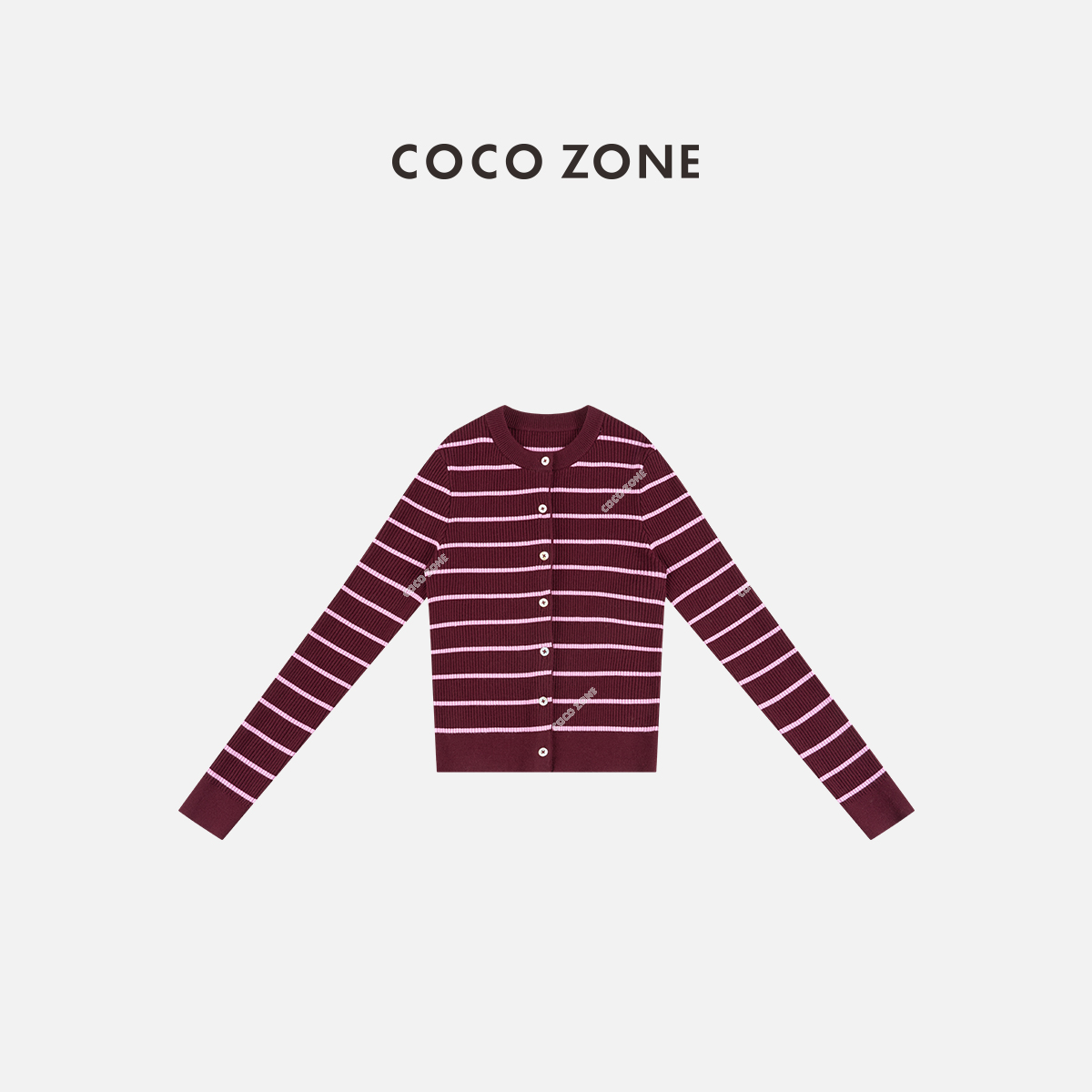 COCO ZONE 慵懒风条纹撞色单排扣休闲针织开衫CC1D2731