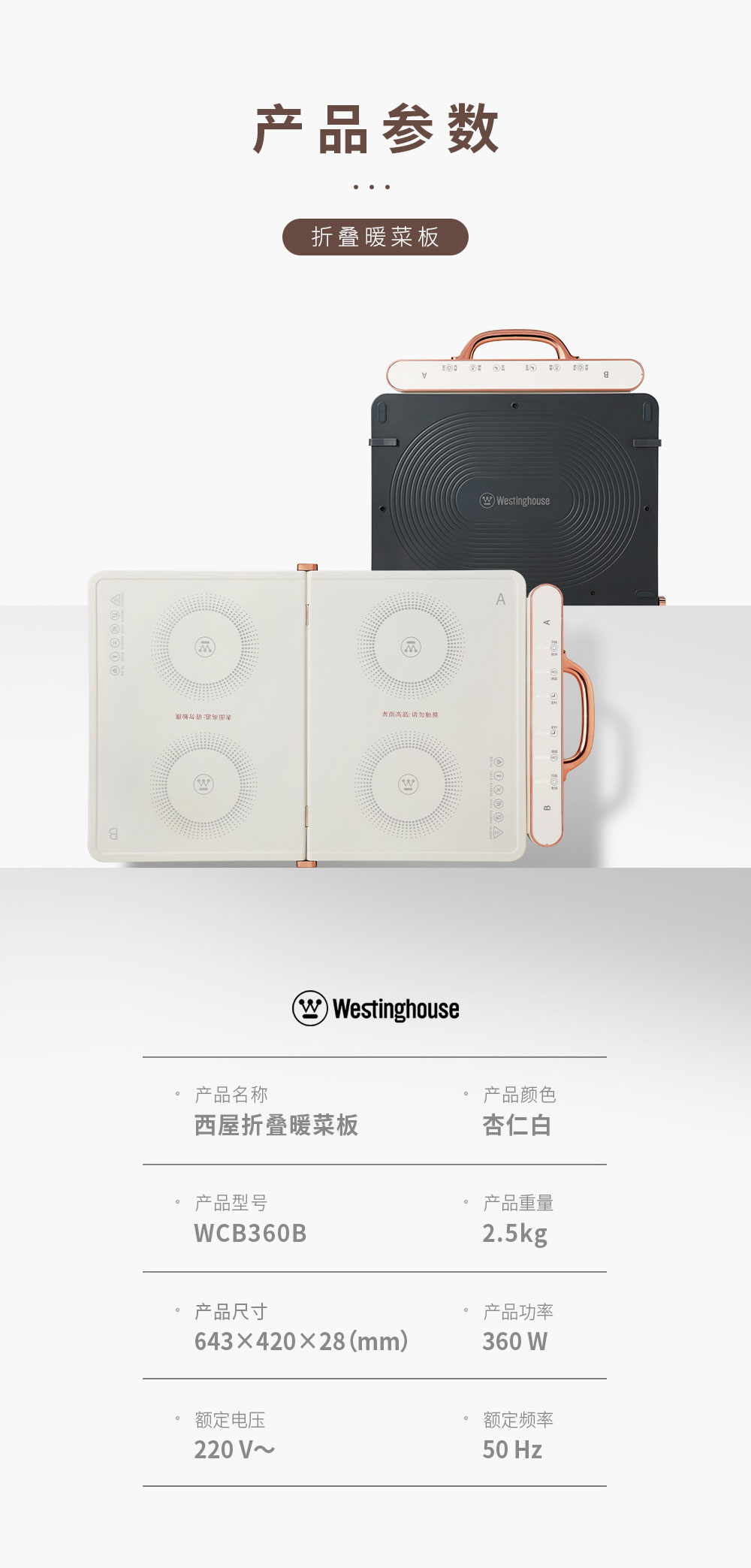 西屋Westinghouse-折叠暖菜板WCB360B