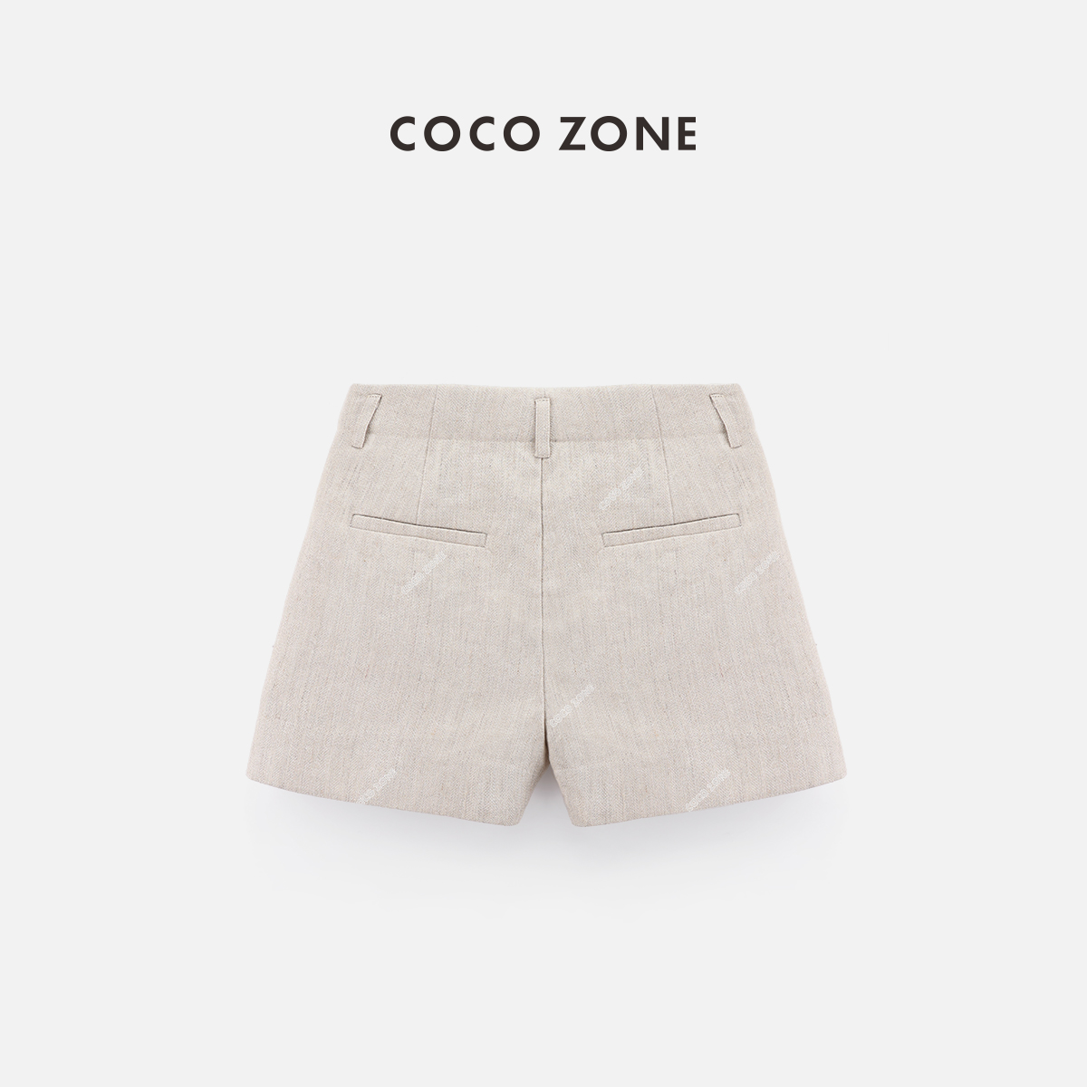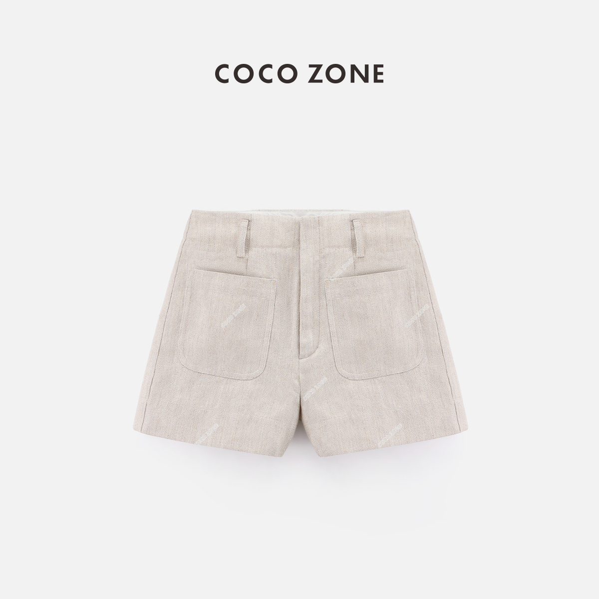 COCO ZONE2024复古风腰头撞色短裤暗扣前幅贴袋裤子24C10182