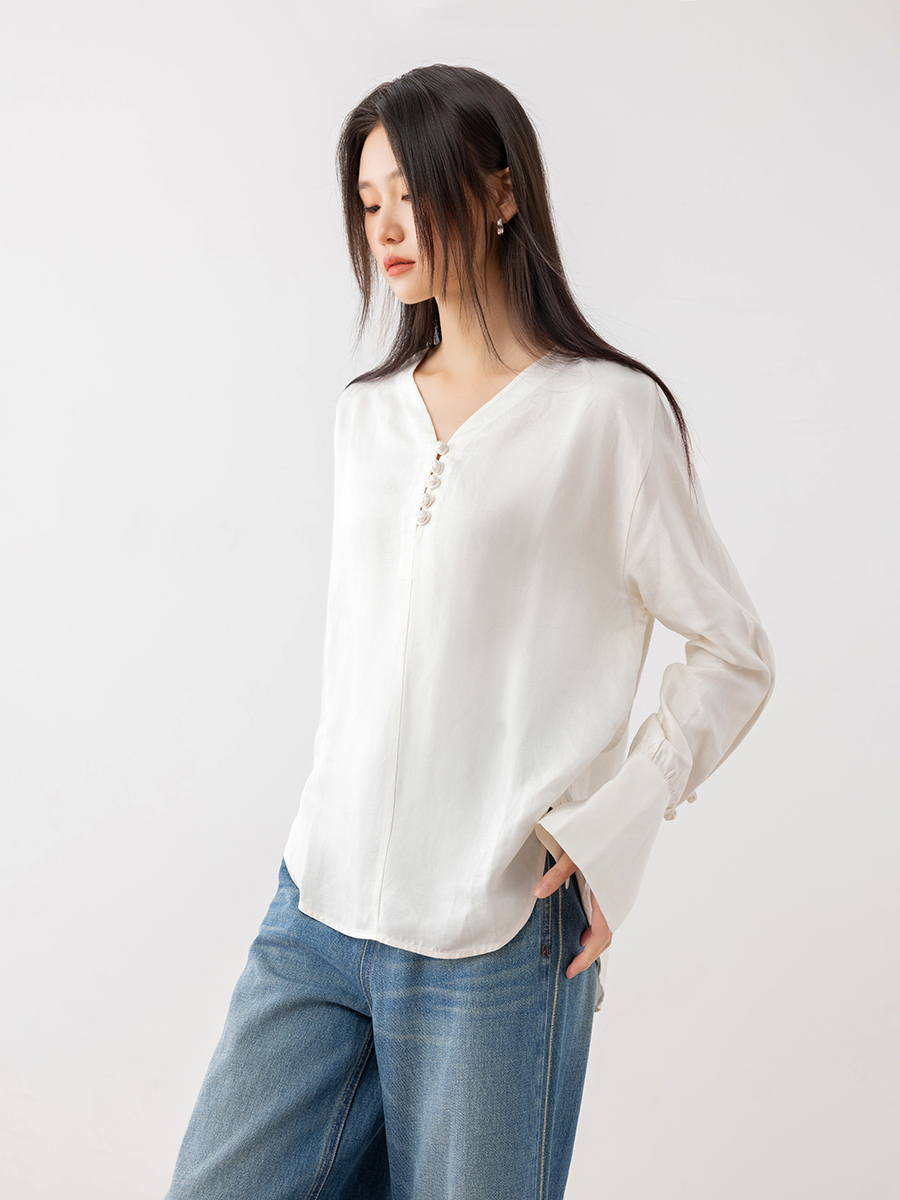 COCO ZONE春季纯色简约长袖衬衣百搭通勤宽松衬衫CC1A0474
