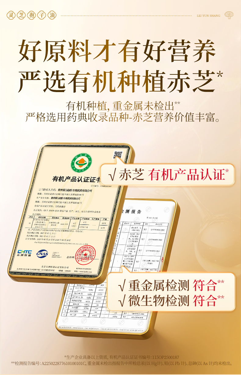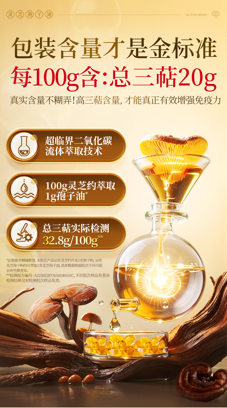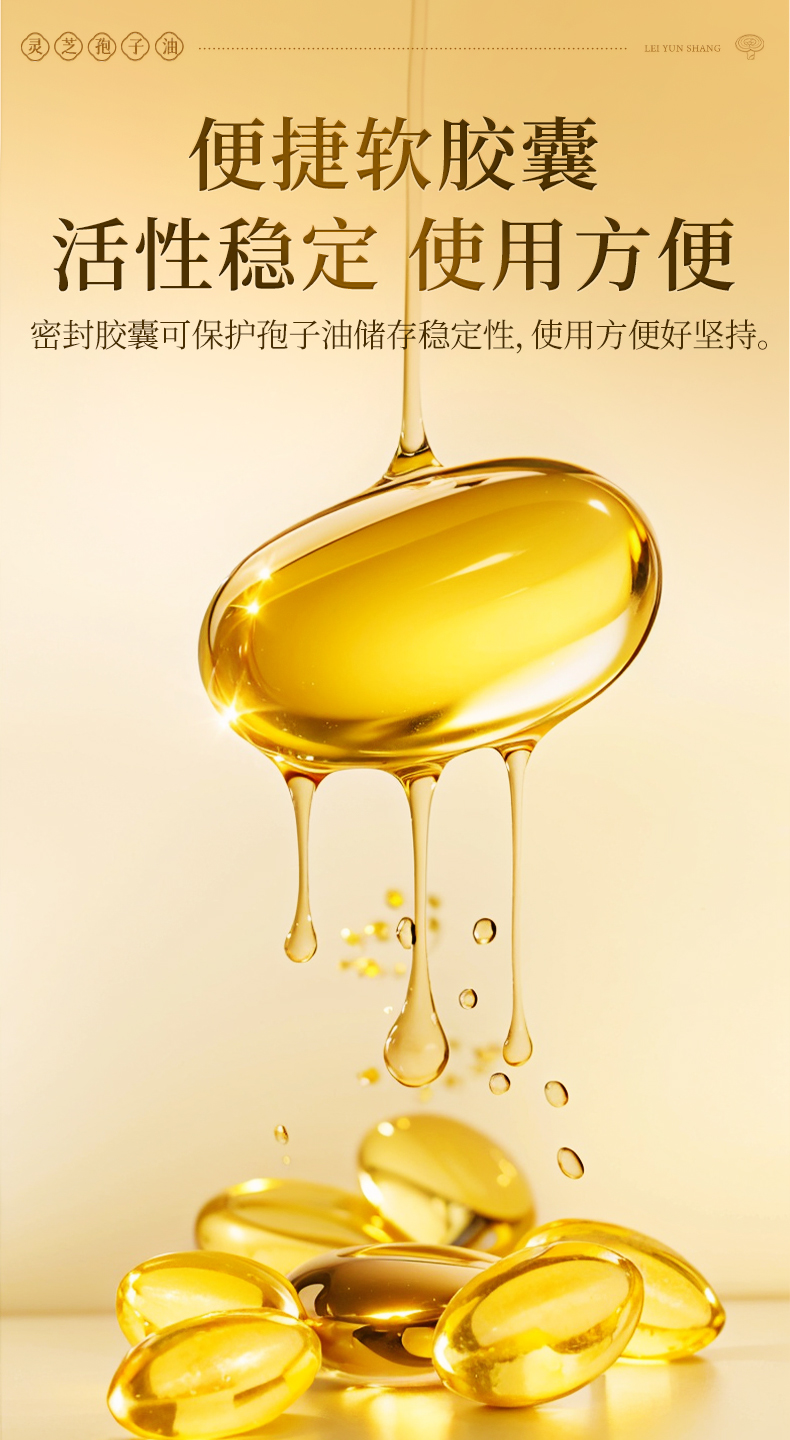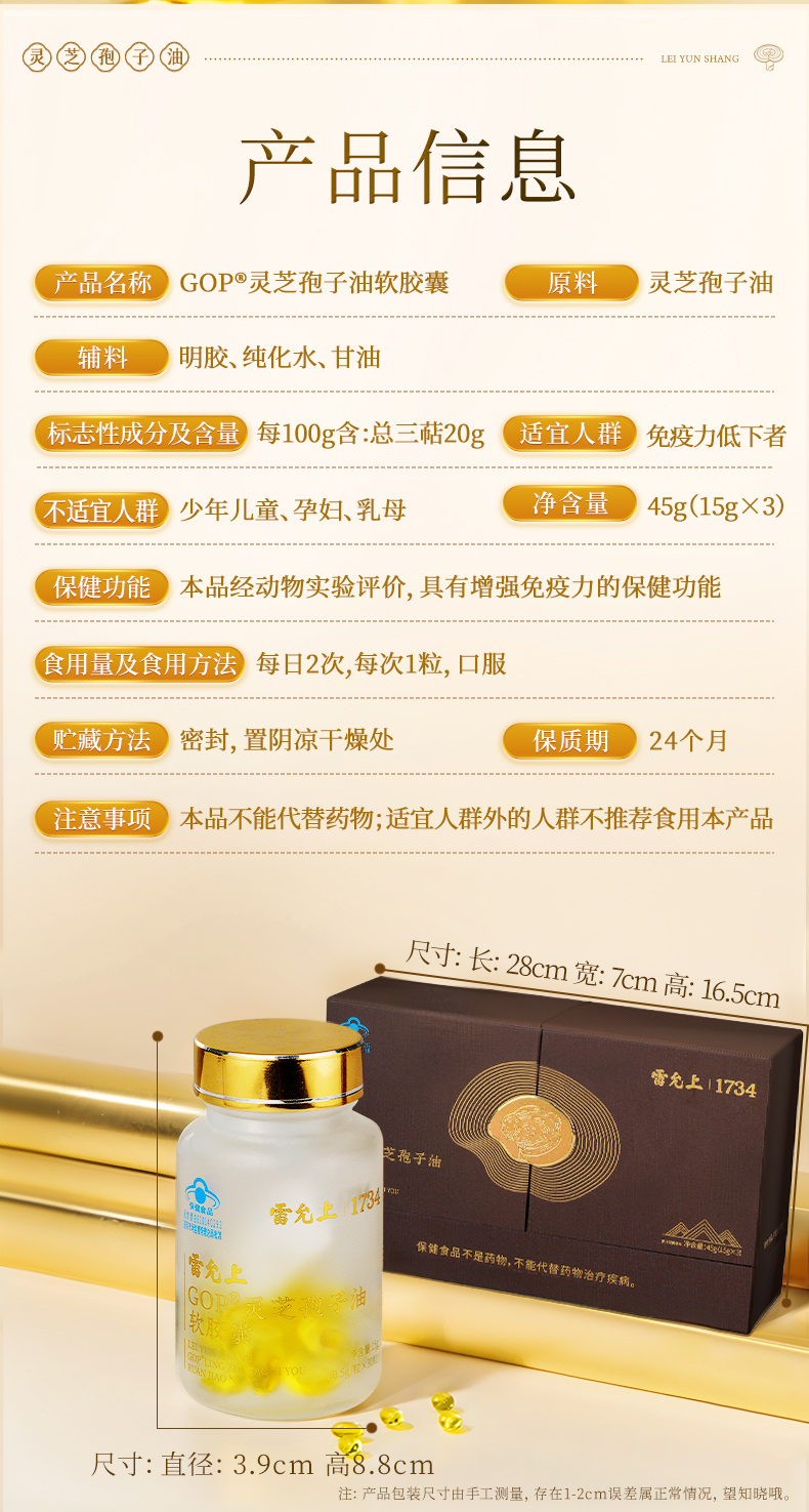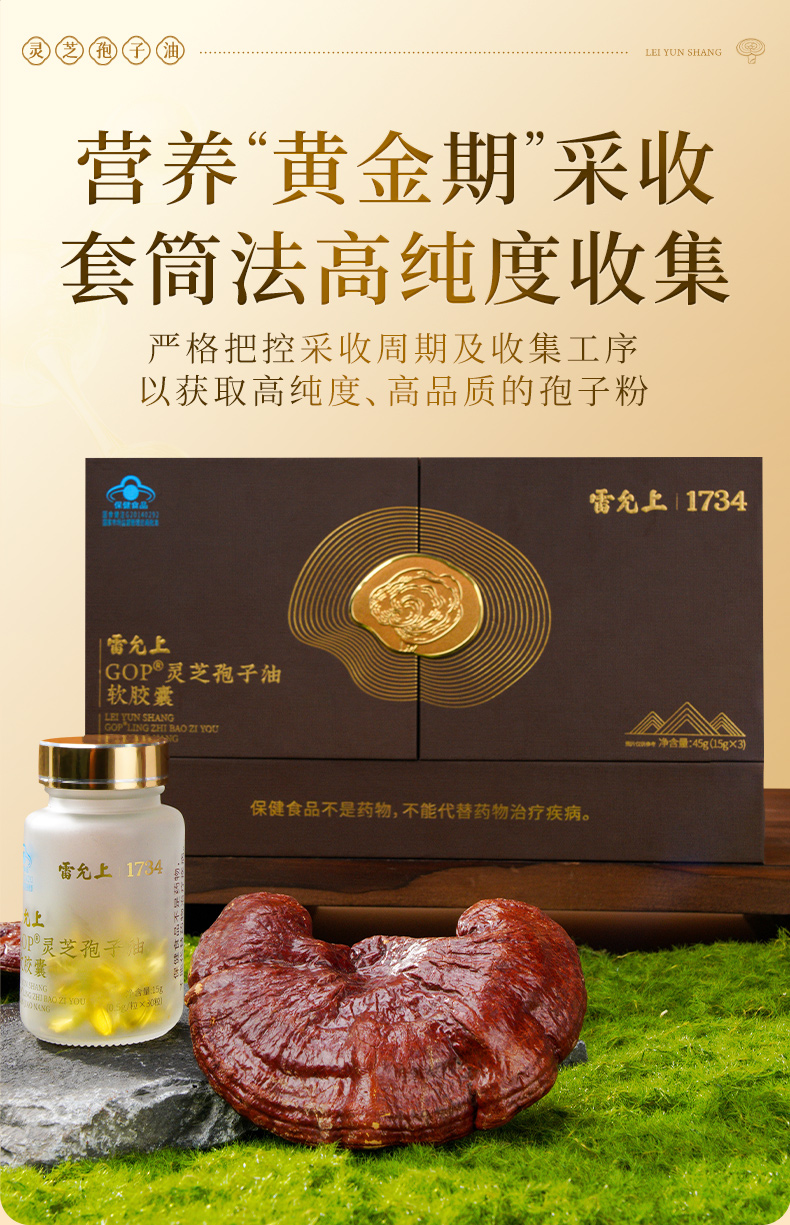 雷允上GOP灵芝孢子油软胶囊45g(0.5g×30粒×3瓶)/盒