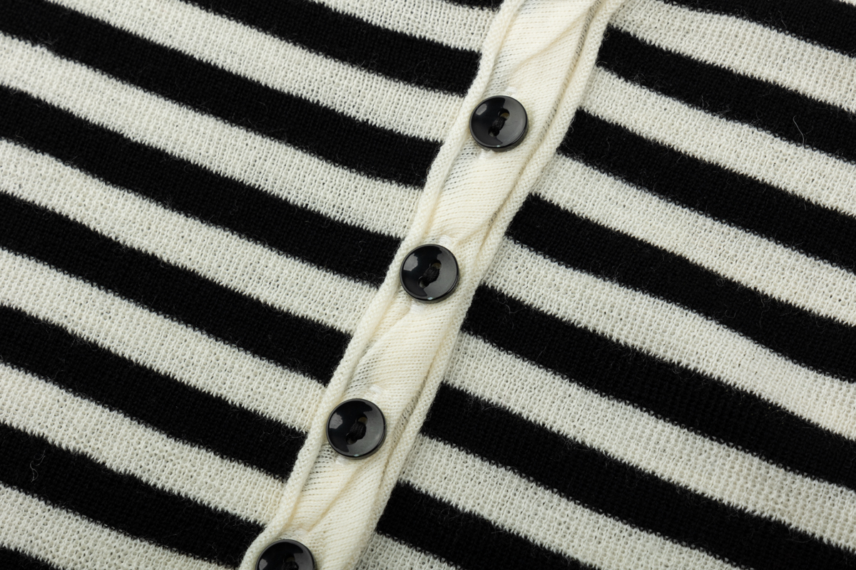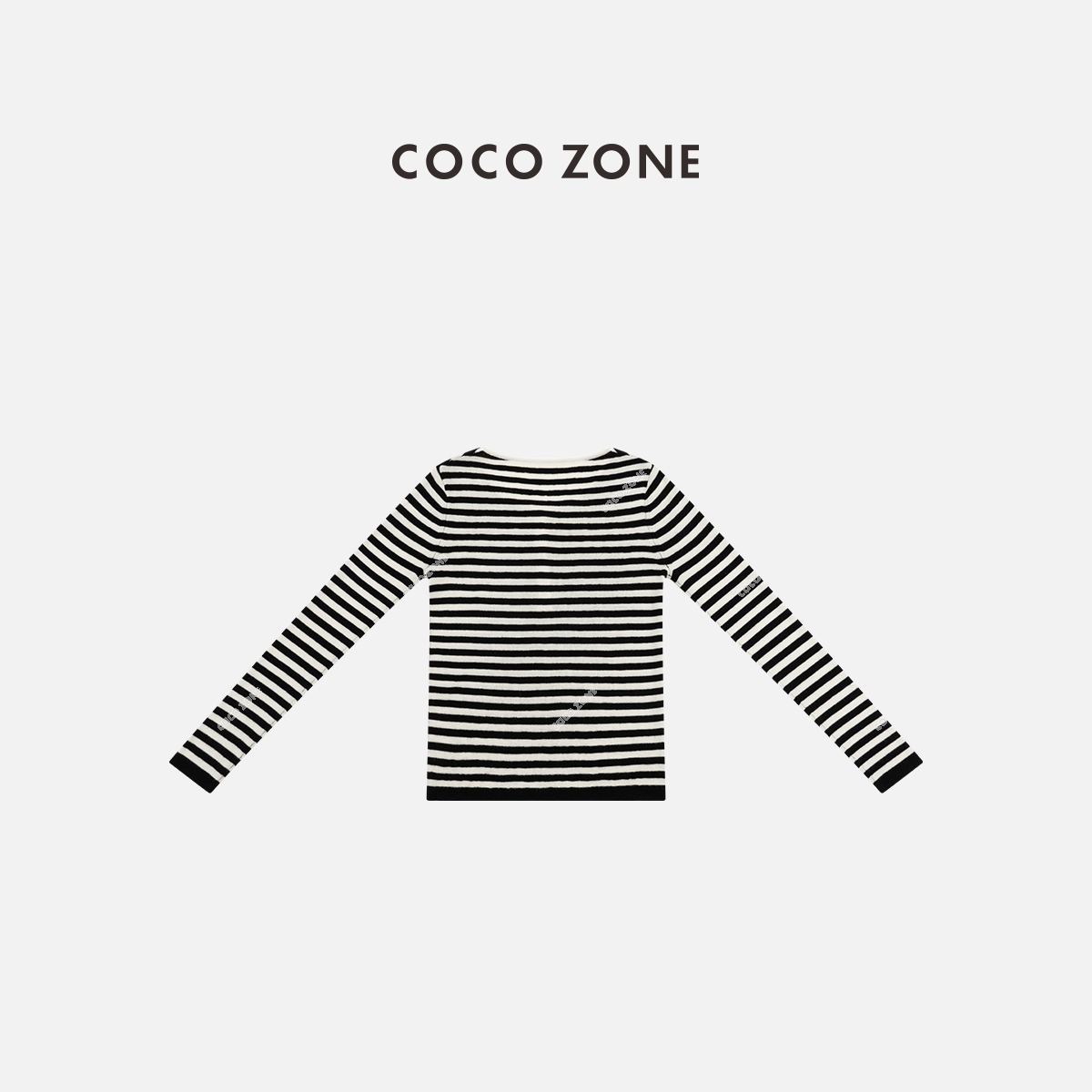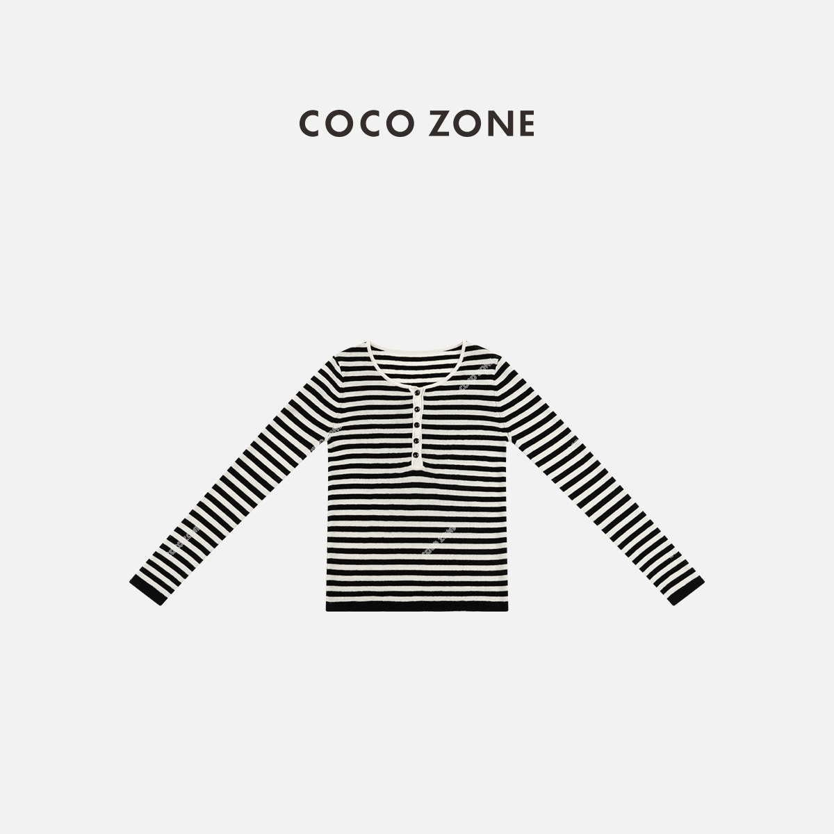 COCO ZONE 条纹撞色圆领针织衫时尚开领上衣CC1D2352