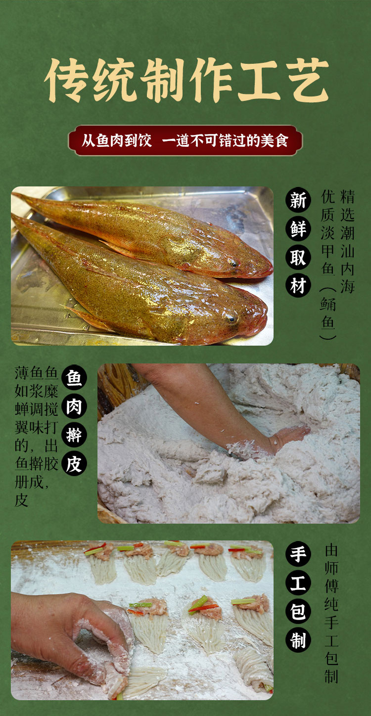【龙北南兴号鱼册】正宗潮汕鲜嫩鱼皮卷鱼皮猪肉馅饺子手工鱼肉卷鱼饺