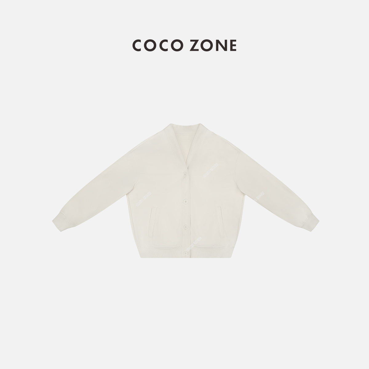 COCO ZONE 2024高级感杏色V领针织休闲百搭开衫外套24C10212