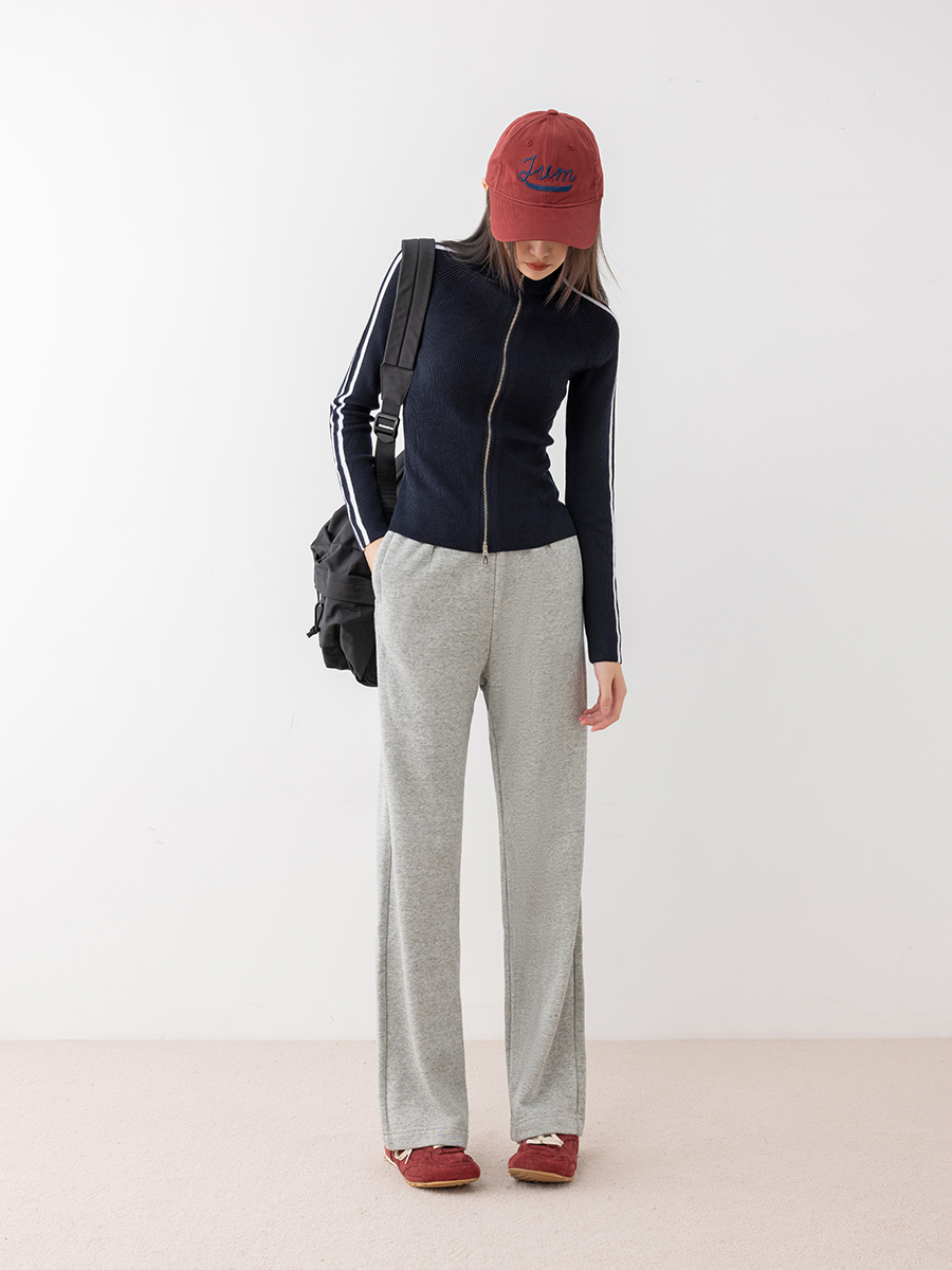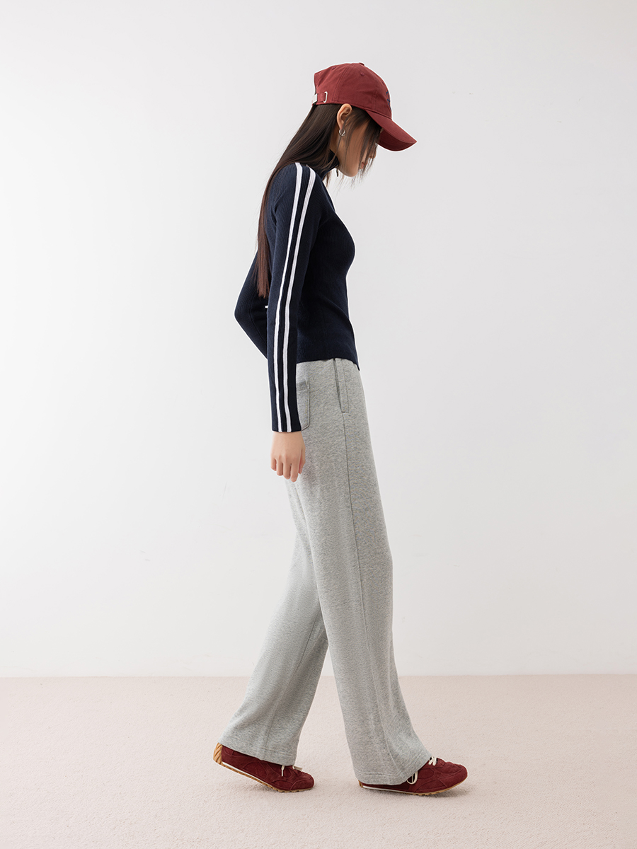刘一一&COCO ZONE春季新款休闲裤松紧腰直筒百搭阔腿长裤24C10110