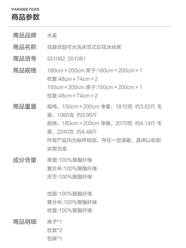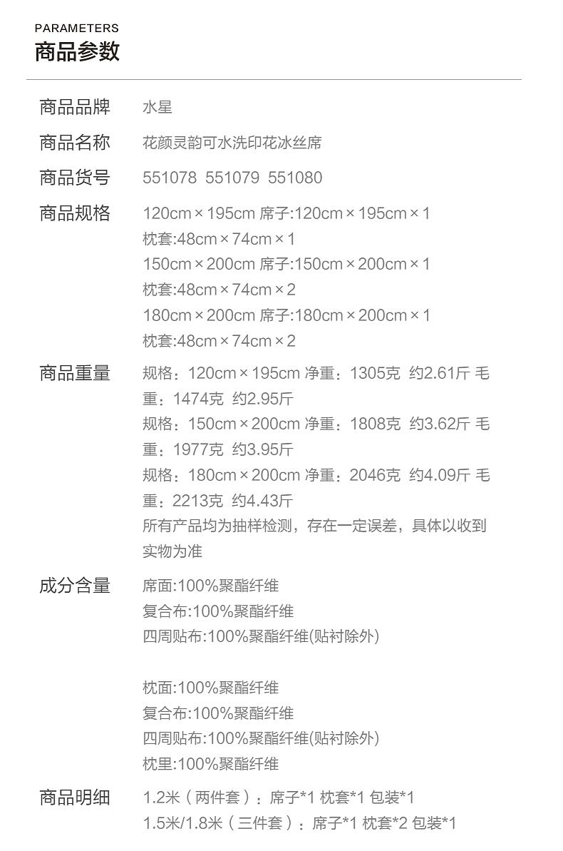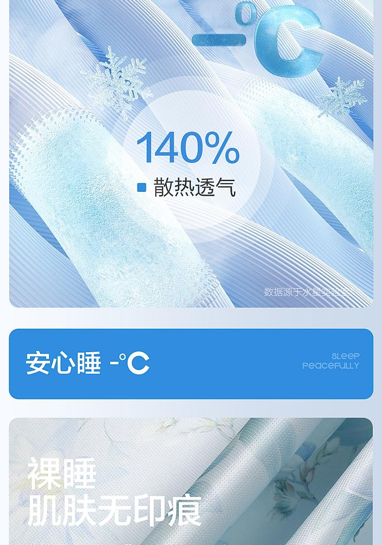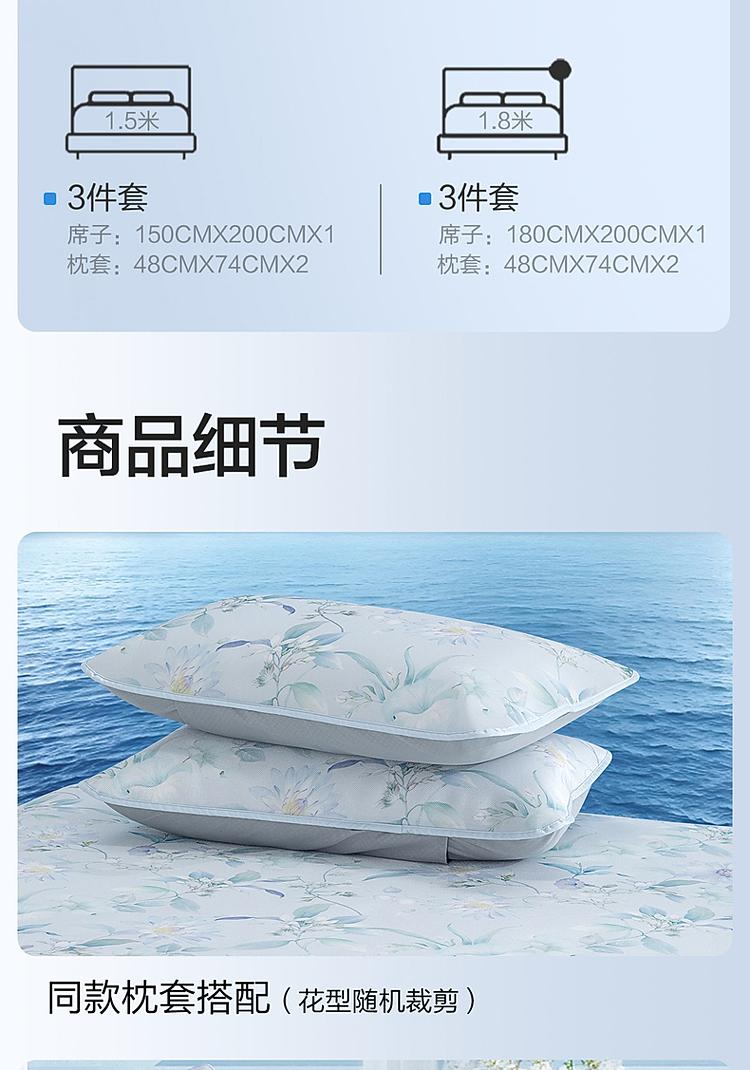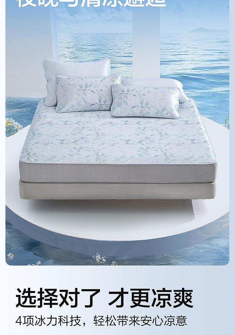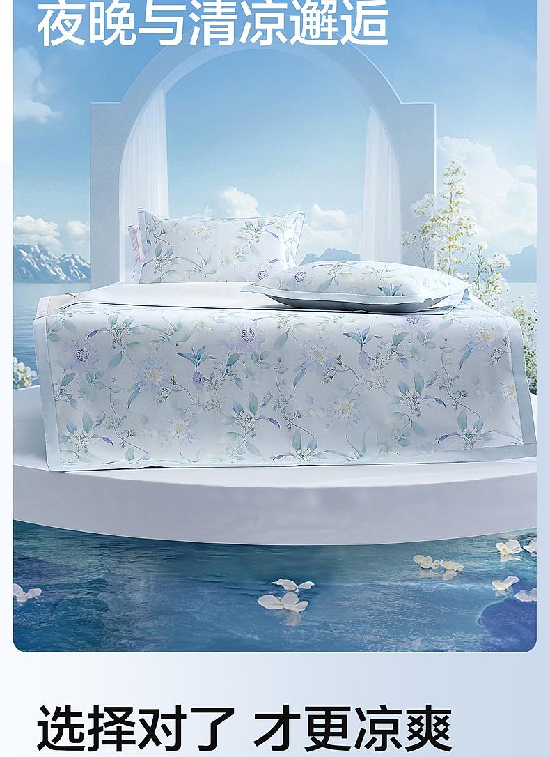 【水星家纺】夏季A类抑菌花颜灵韵床单式/床笠式可水洗印花冰丝席