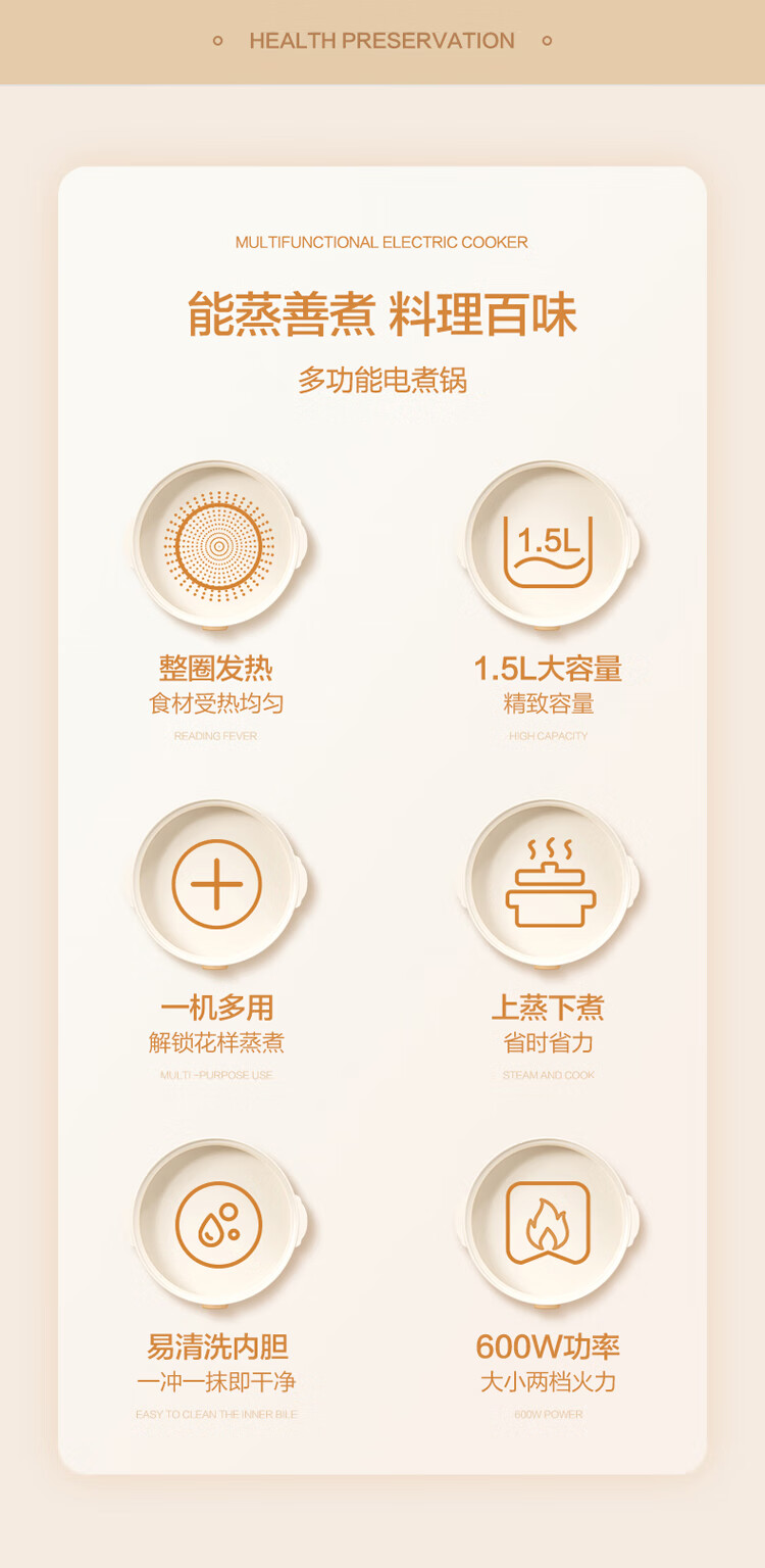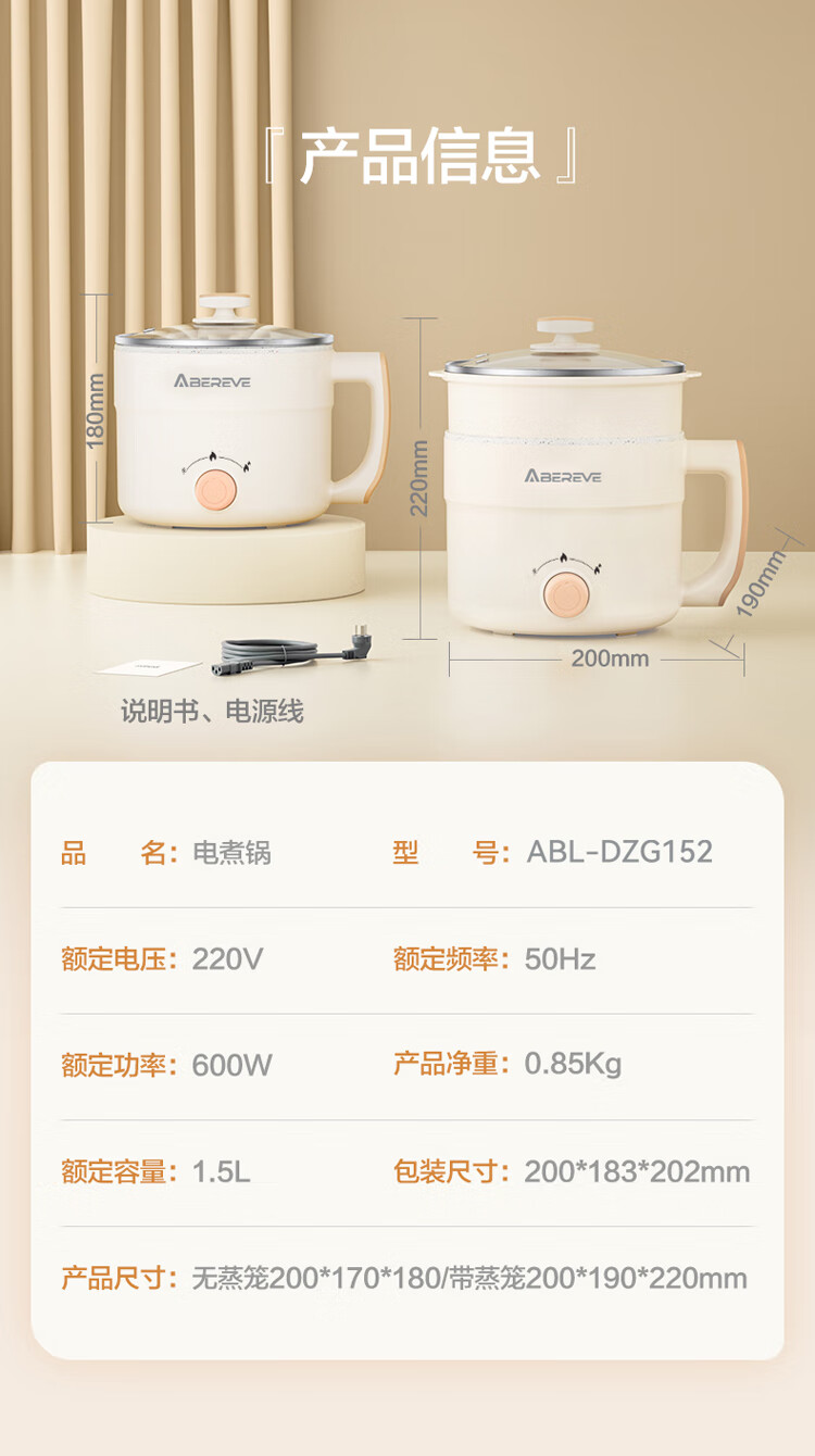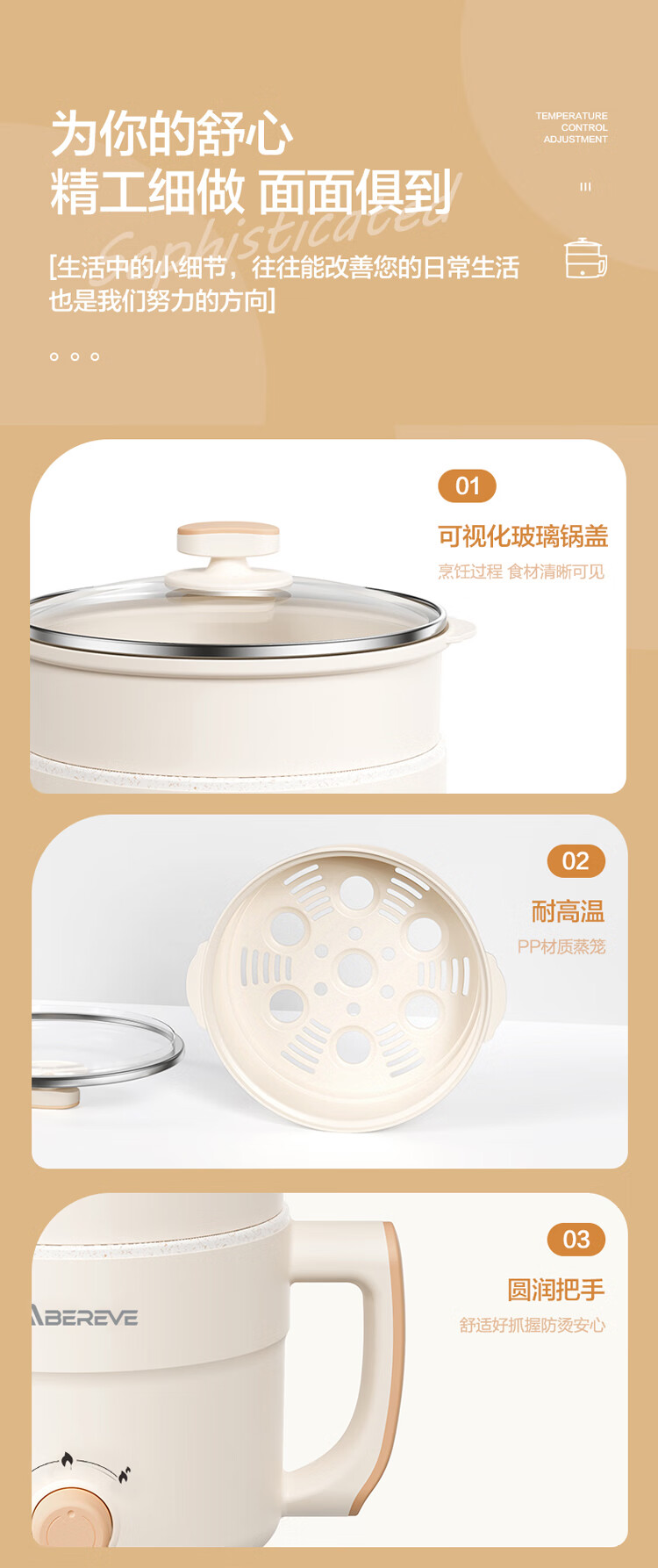 艾贝丽多功能电煮锅(带蒸笼)ABL-DZG152