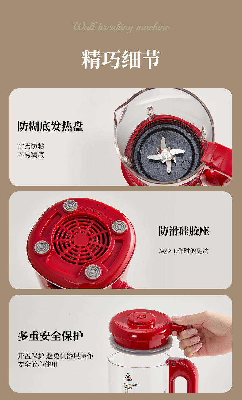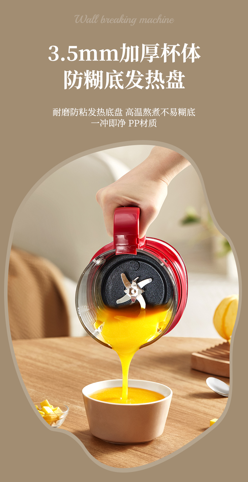 7. 3.5mm加厚杯体,防糊底发热盘,食品级PP材质。