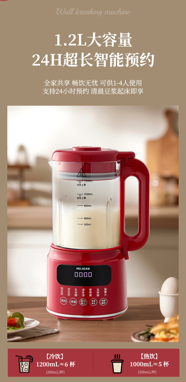 1. 1.2 L大容量,可供1-4人使用。