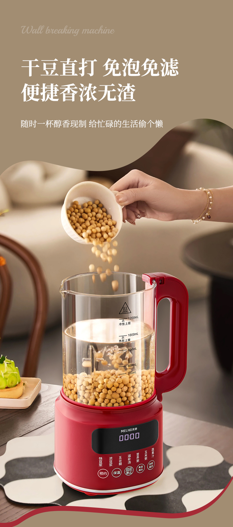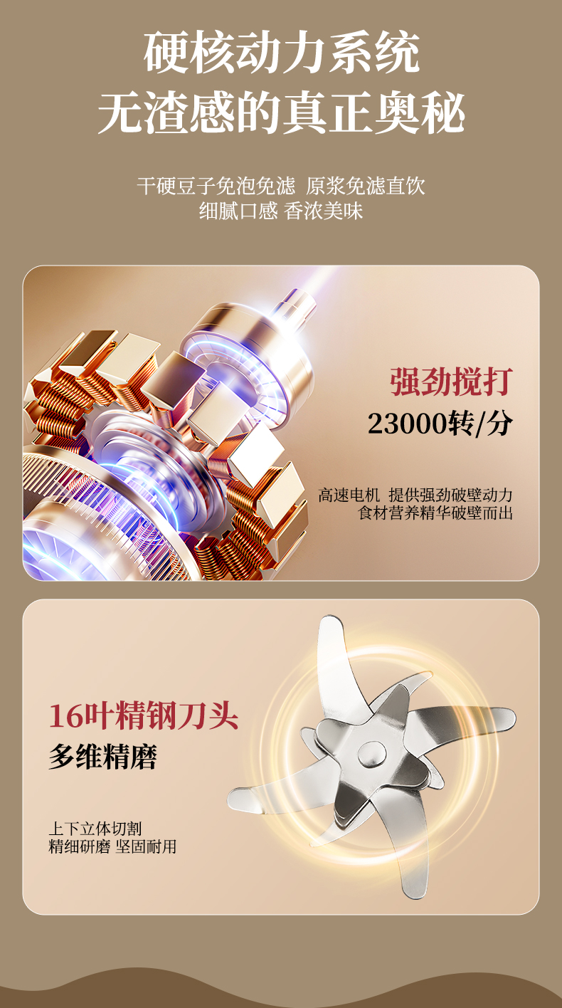 5. 干豆直打,免泡免滤,便捷香浓无渣。