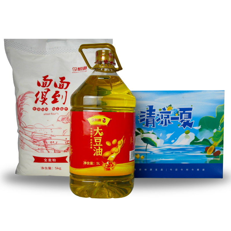 今粮道米面油组合12kg(原味全麦面粉5kg+清凉一夏礼盒2kg+大豆油5L)JLD005+JLD019+JLD016