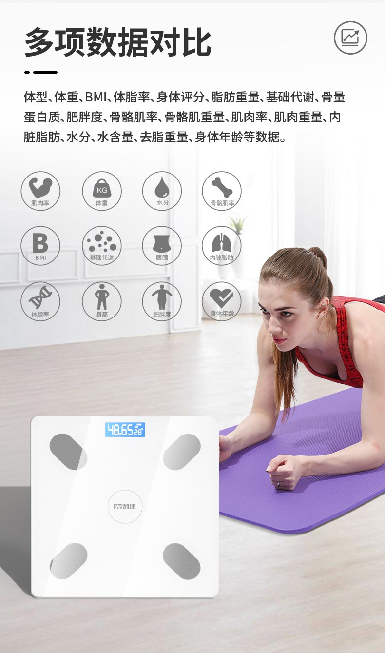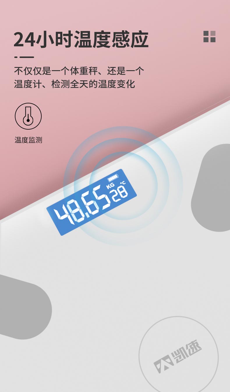 凯速KANSOON智能蓝牙体脂秤皎月白