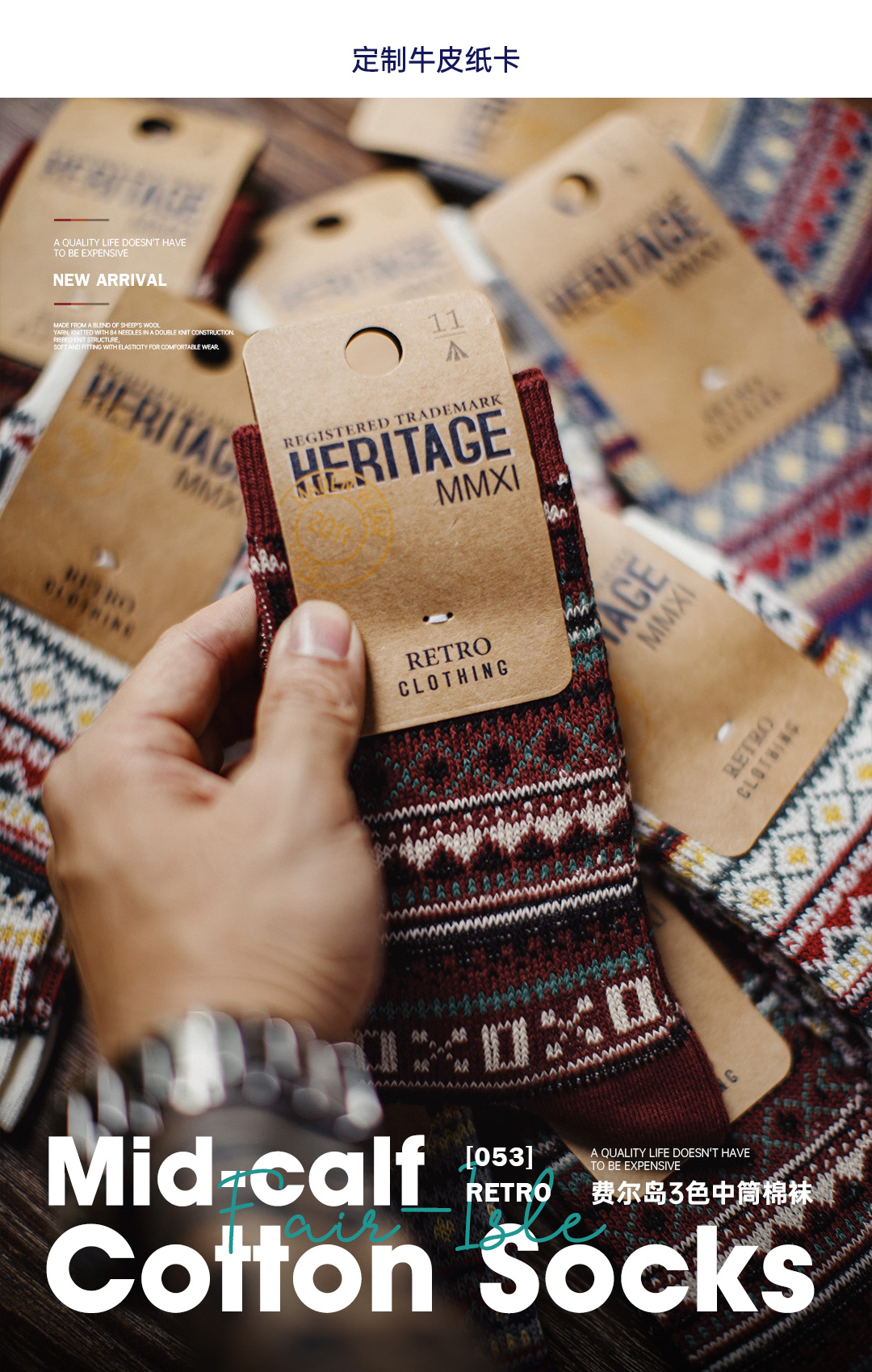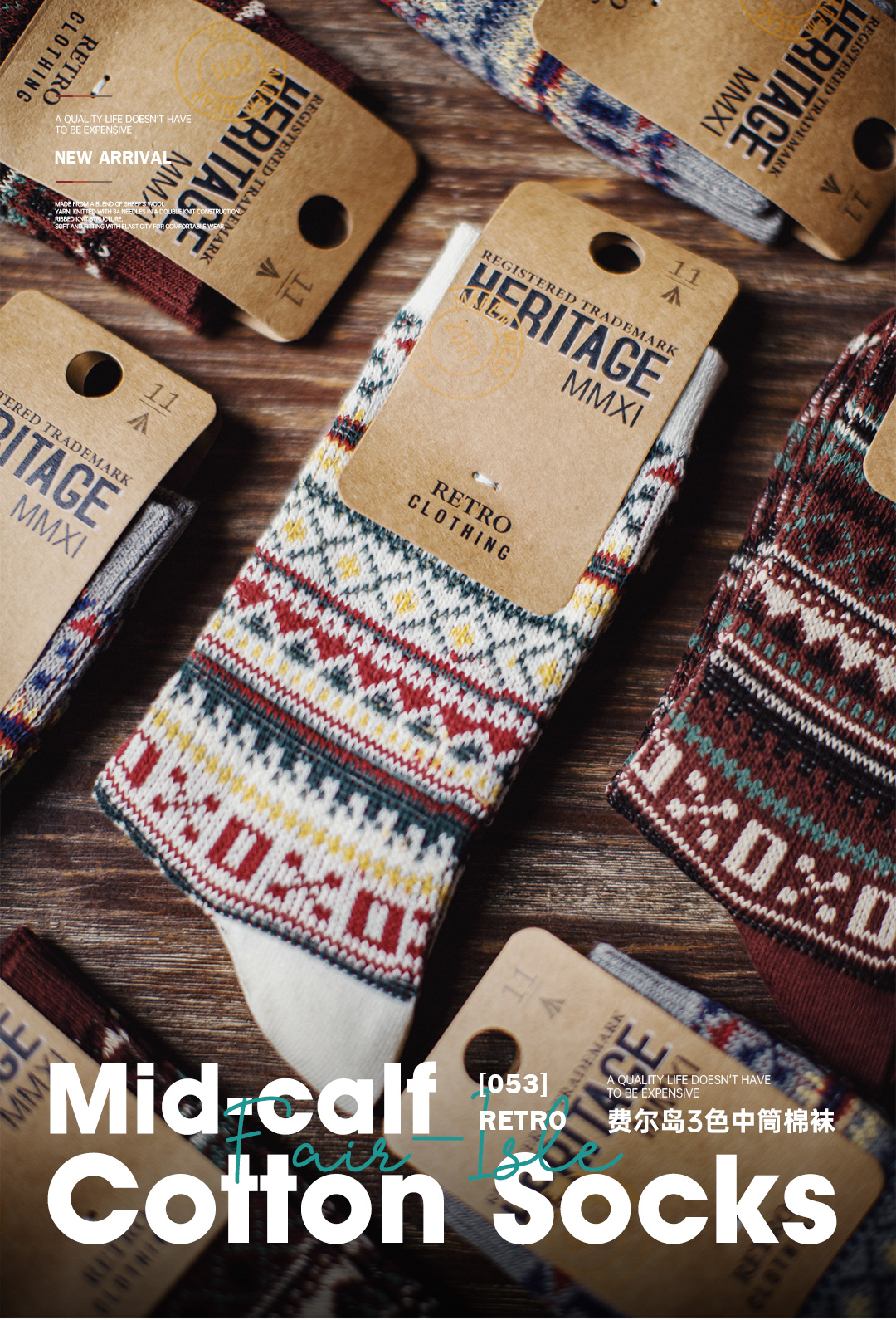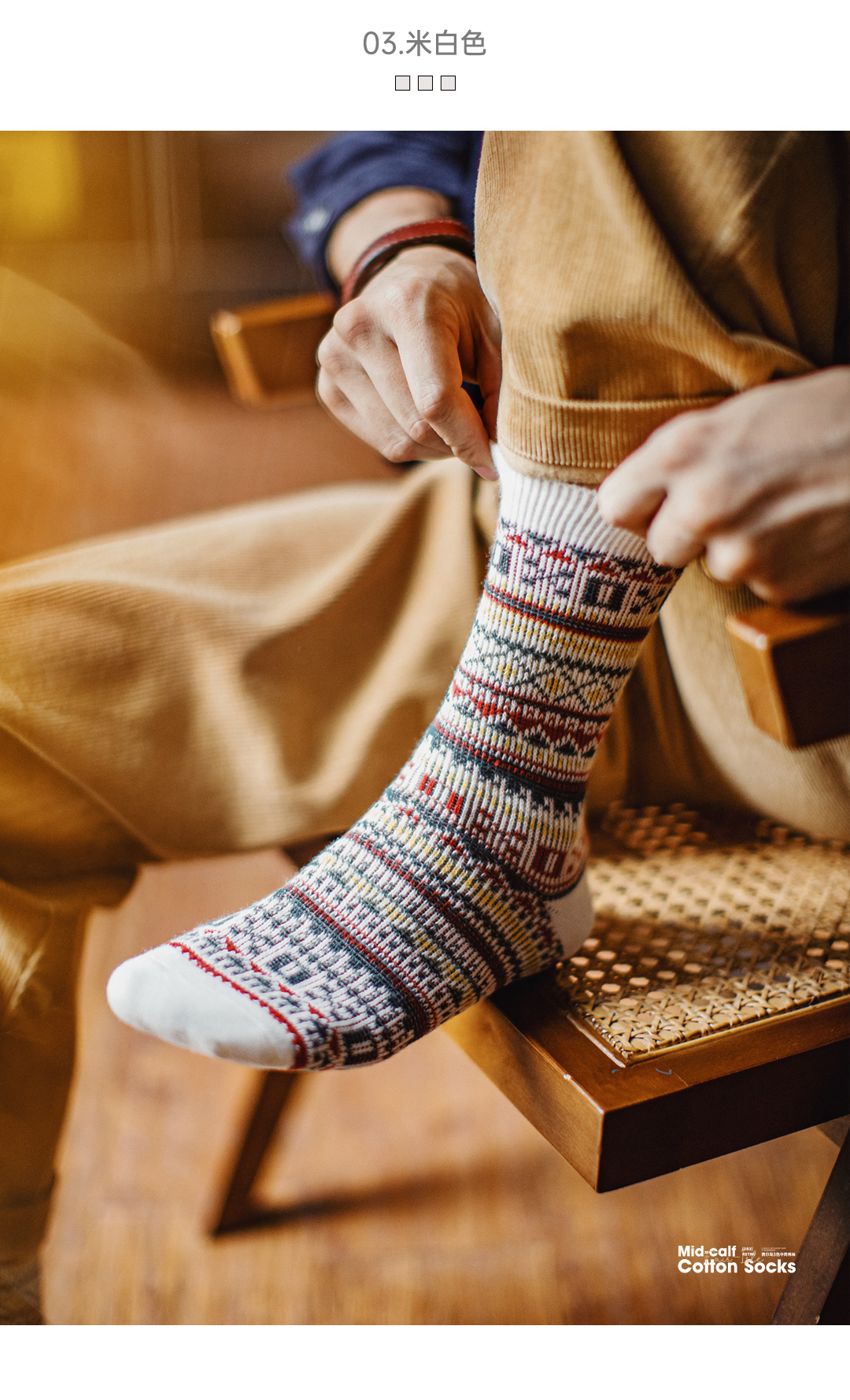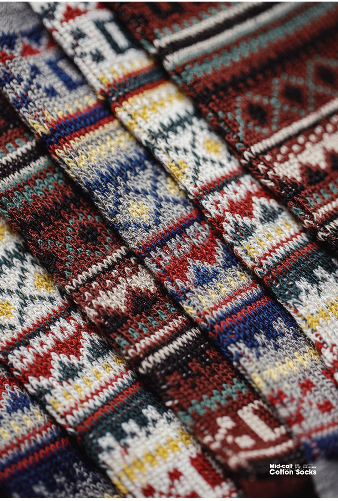 马登工装复古费尔岛风中筒厚袜子美式民族风针织保暖长袜男士冬季