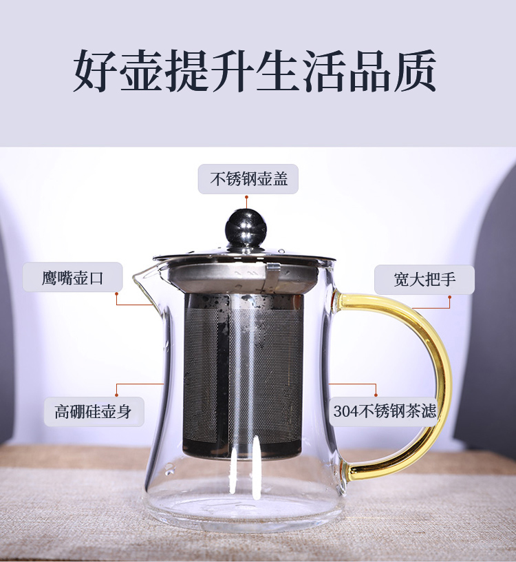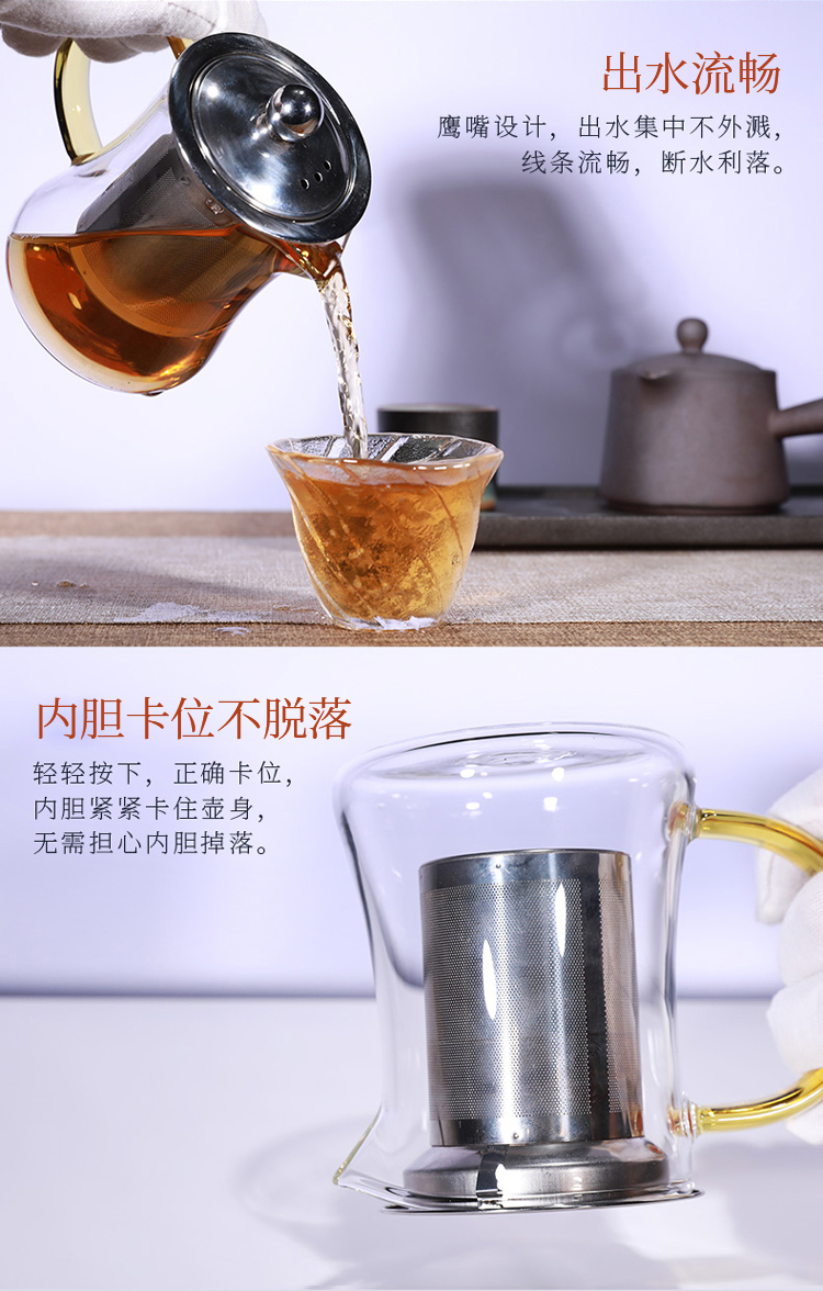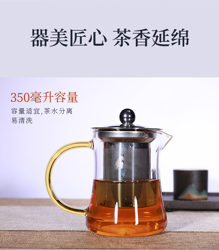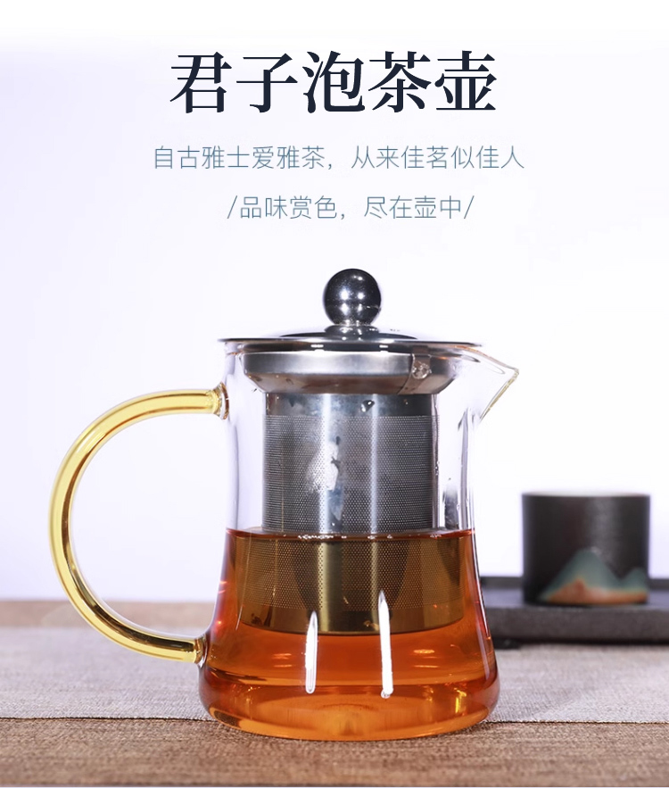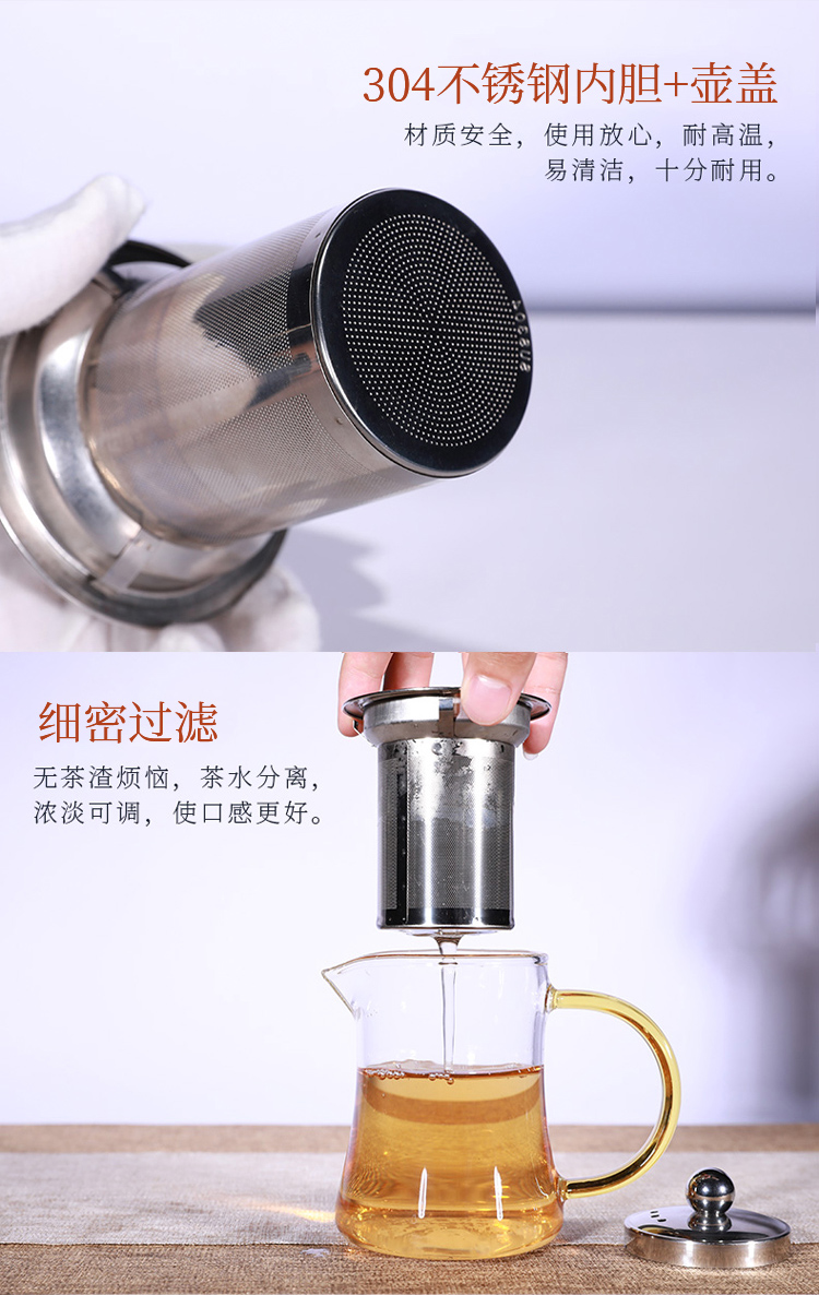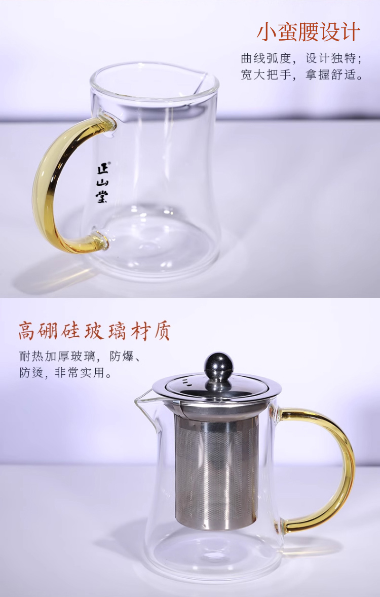 正山堂君子泡茶壶 高硼硅玻璃304不锈钢350ml 茶具