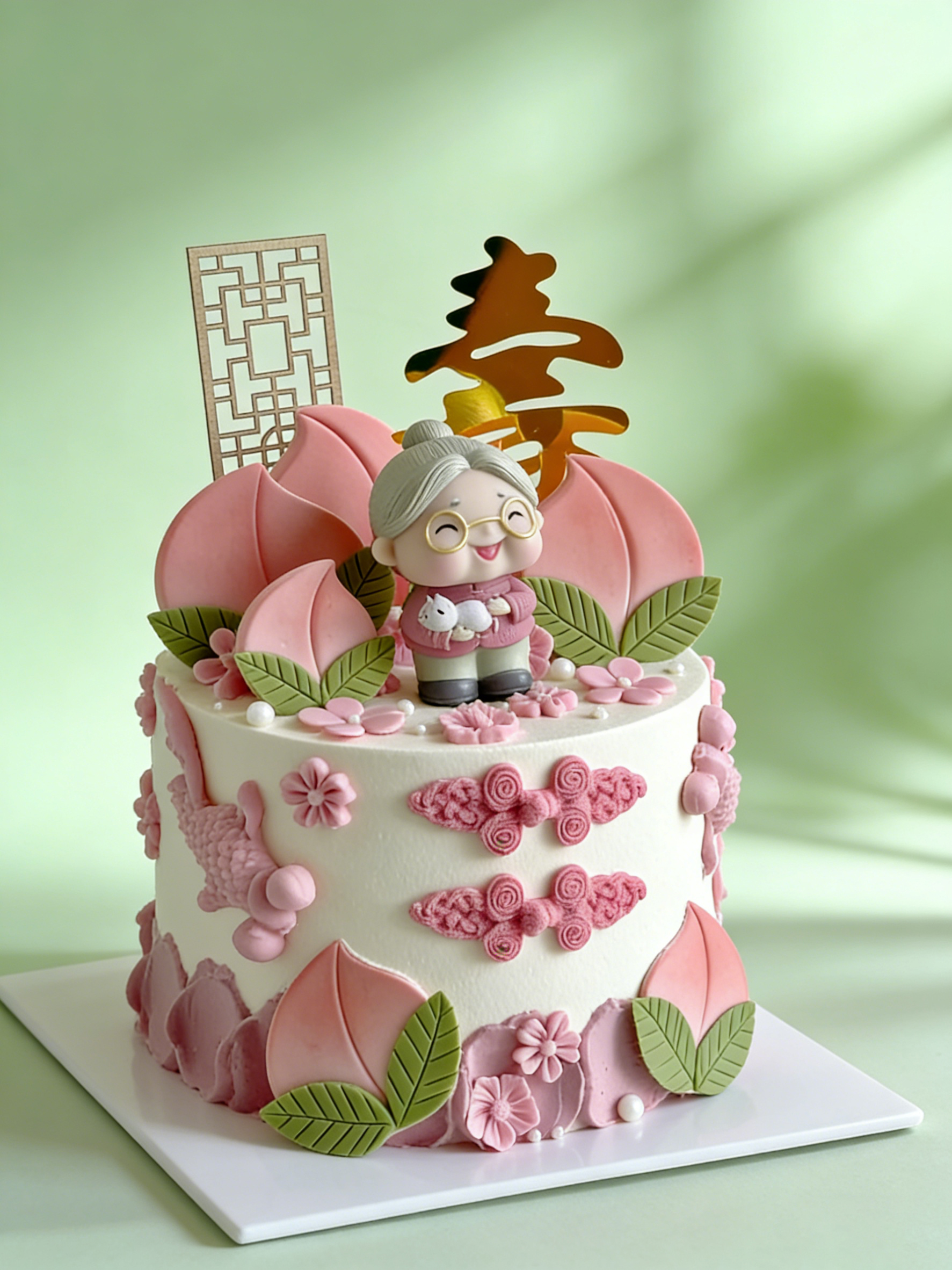 粉系奶奶祝寿蛋糕