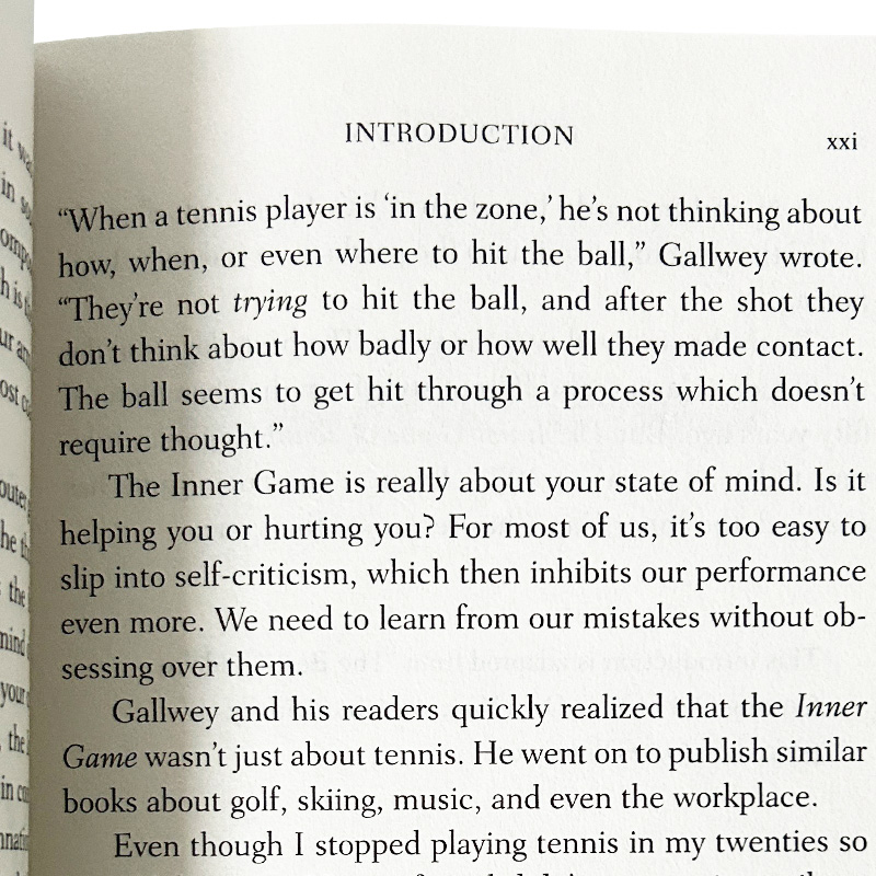 With more than 800,000 copies sold since it was first published thirty years ago, this phenomenally successful guide has become a touchstone for hundreds of thousands of people. Not just for tennis players, or even just for athletes in general, this handbook works for anybody who wants to improve his or her performance in any activity, from playing music to getting ahead at work. W. Timothy Gallwey, a leading innovator in sports psychology, reveals how to