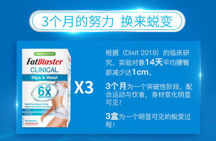 A:因为体质和基础代谢率不同,每个人试用结果程度都有区别。实验表明只要配合适量运动,14天初见成效,坚持3个月会有明显变化哦。