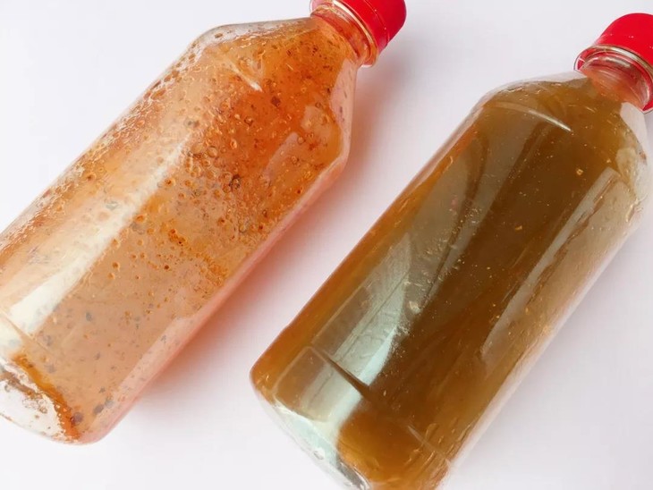 2. 另一瓶水直接加入一勺半辣椒油,摇晃两个瓶子观察效果。