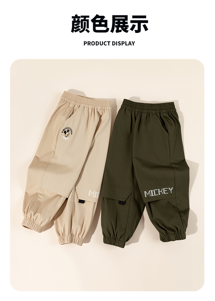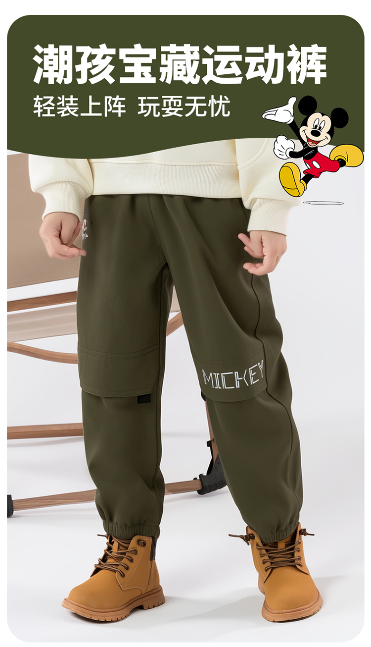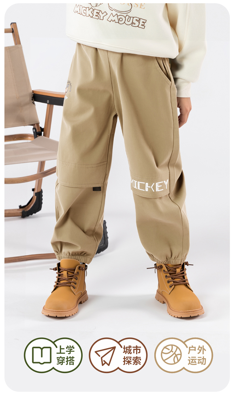 迪士尼25秋季新款男童休闲长裤中大童运动裤户外登山工装裤XD1EK012