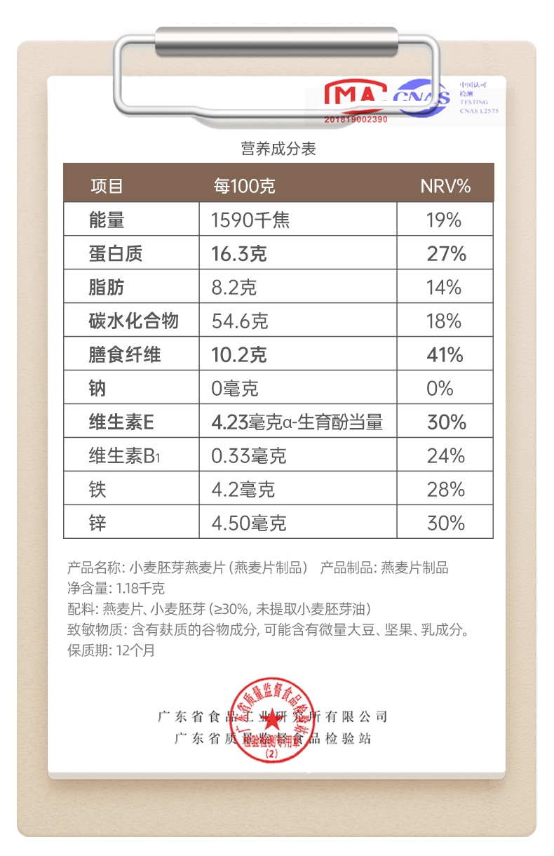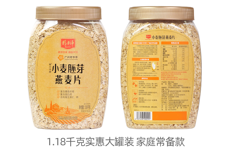 精力沛燕麦片加麦胚芽燕麦片小麦胚芽快熟早餐麦片1.18kg