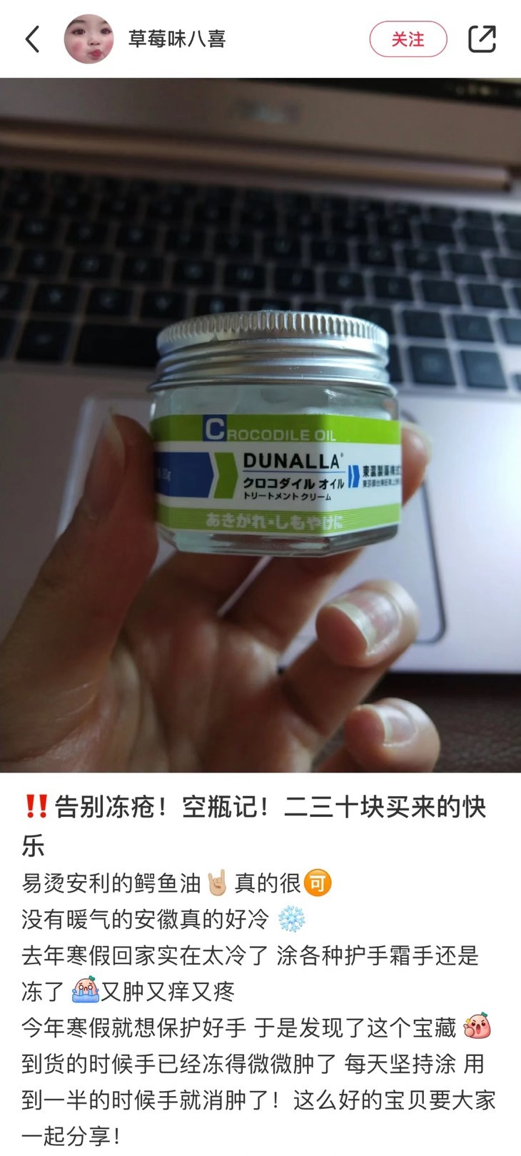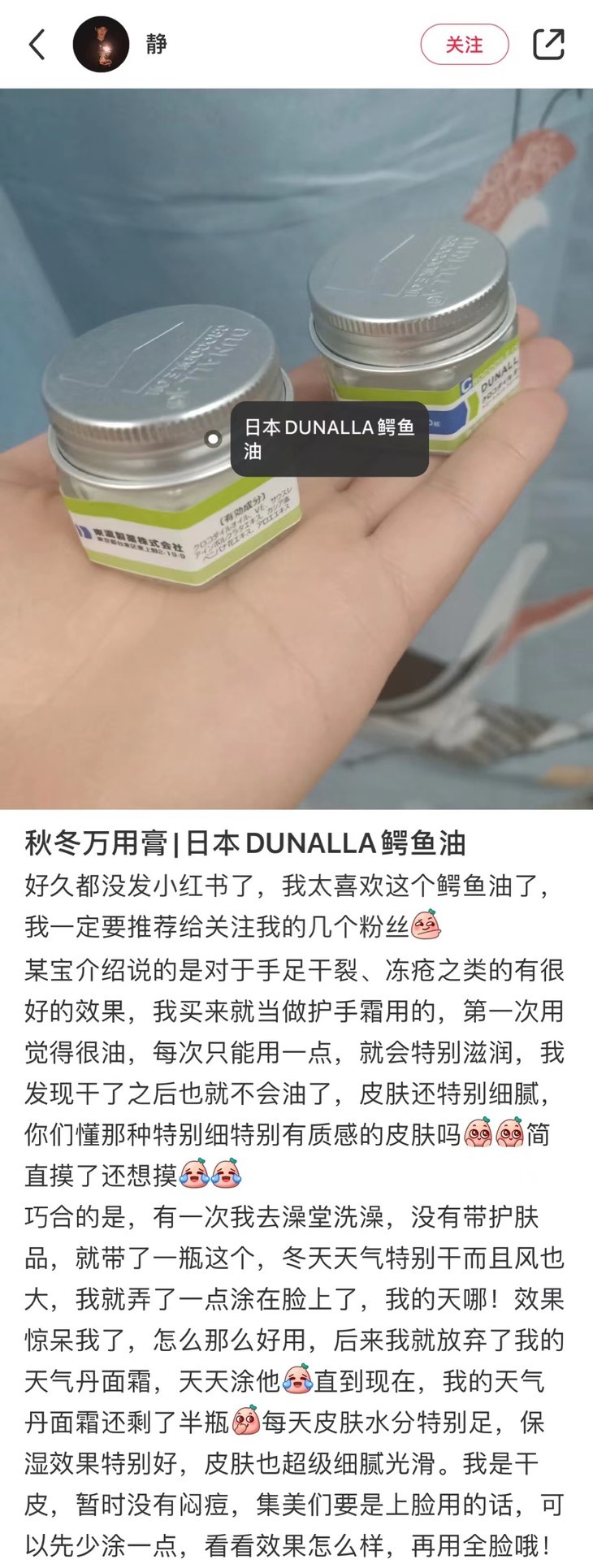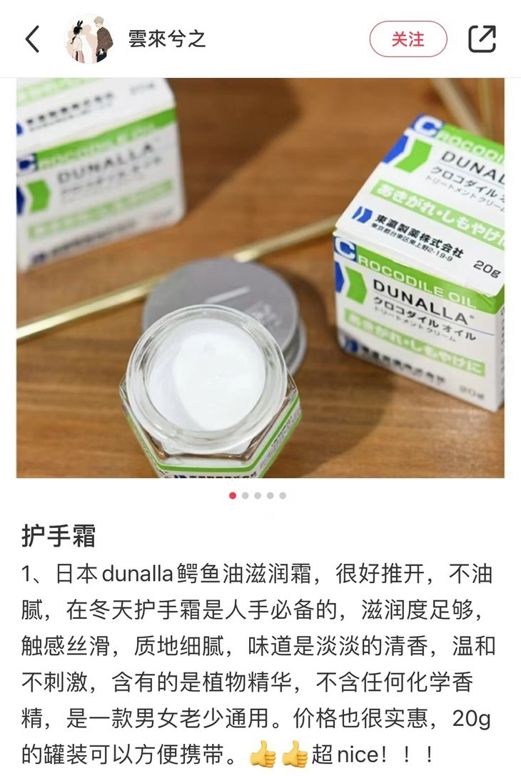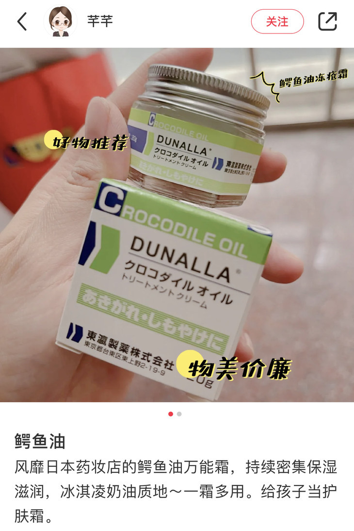 之前就上过的日本DUNALLA鳄鱼油滋润霜复活啦,其实纠结蛮久的,毕竟是日本牌子,不过我们确认了一下,是国内生产的,所以,为了我和大家都不受冻疮的侵袭,还是得安排上!