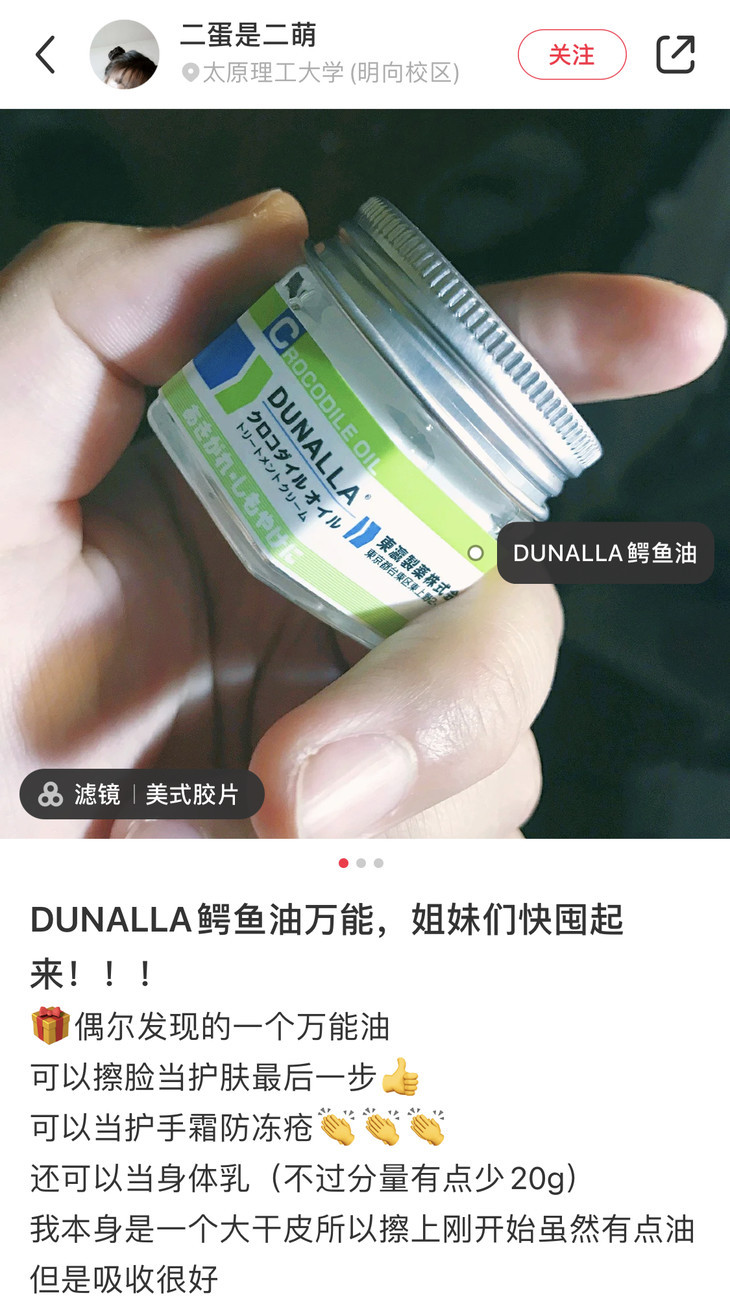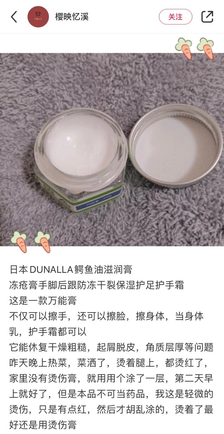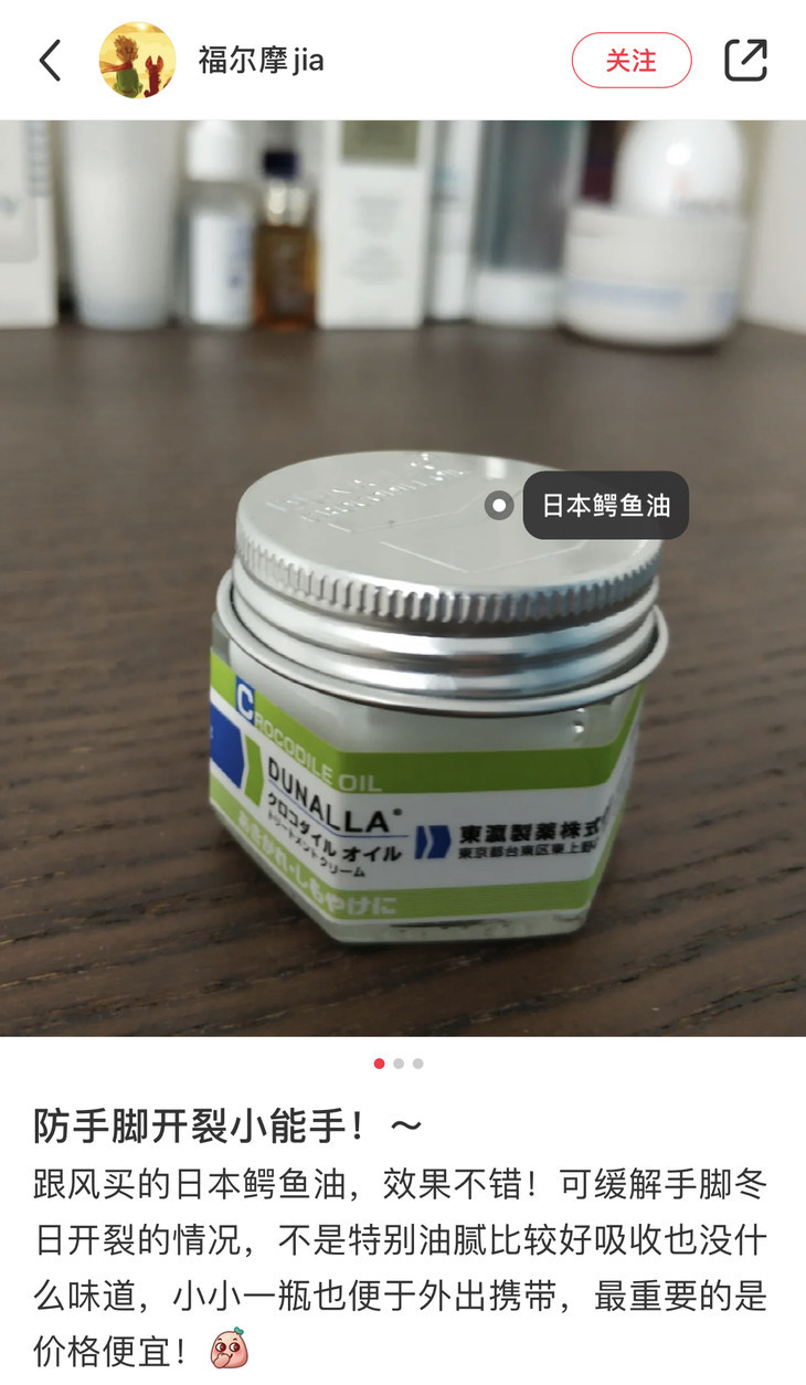 之前就上过的日本DUNALLA鳄鱼油滋润霜复活啦,其实纠结蛮久的,毕竟是日本牌子,不过我们确认了一下,是国内生产的,所以,为了我和大家都不受冻疮的侵袭,还是得安排上!