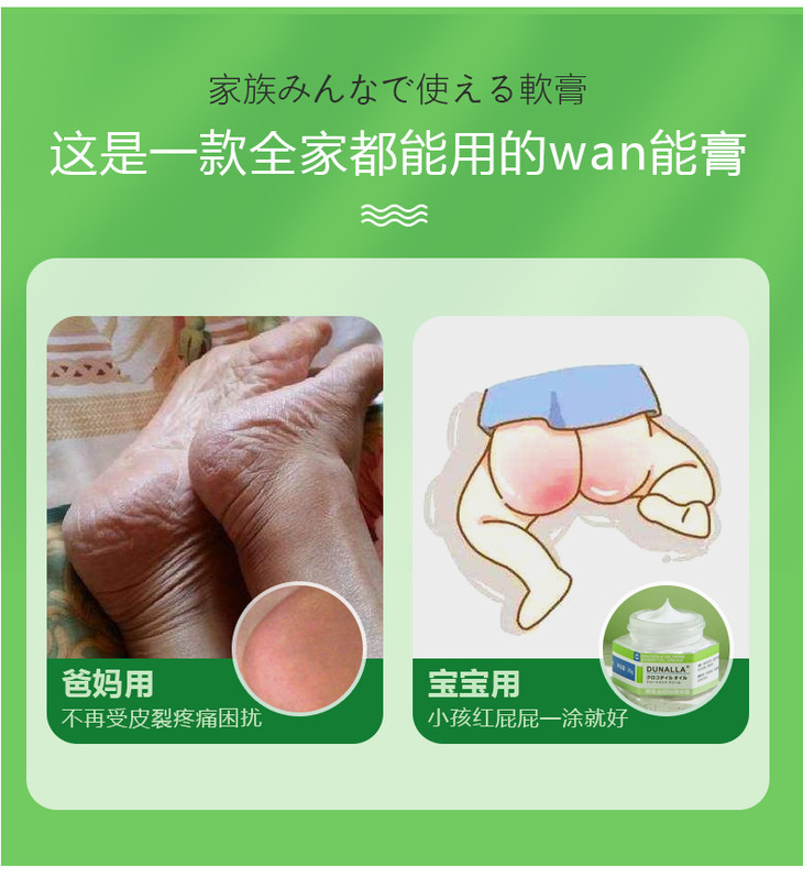 适合肤质:大部分肌肤均可;特别适合手部干裂、倒刺,足跟皲裂干裂人群;冻疮干痒隐疼护理使用