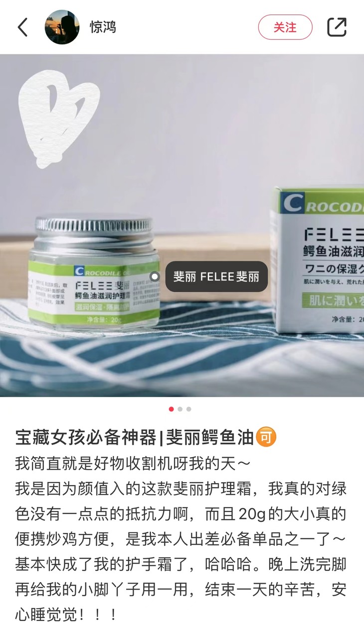 容易长冻疮的可以入了试试,它能修复已生成冻疮,预防未生成冻疮;而手脚严重龟裂开口的,坚持用也会有效果!要说它的多效,除了涂手涂脚,当面霜也没问题,被风吹干裂发红的脸蛋,涂几天就好。还有宝宝的红屁股,也很有效。长辈们也很需要,我给我妈也留了两罐!相信鳄鱼油只要入过一次,就会年年回购!