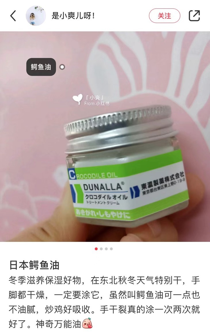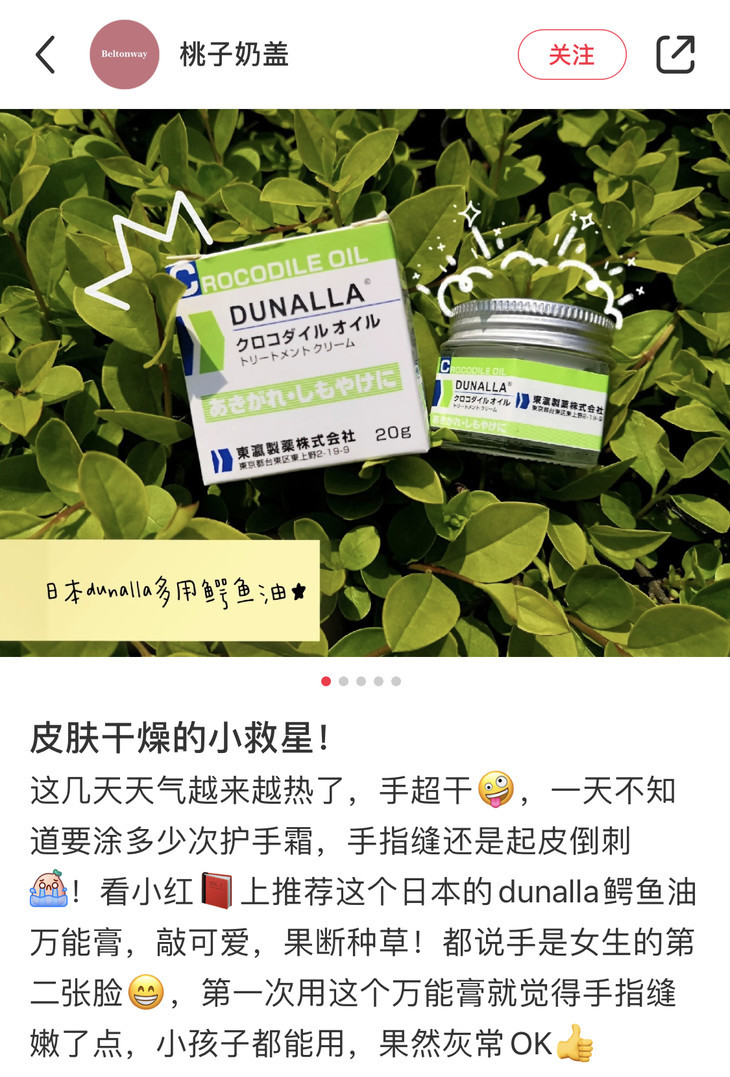 这是能拯救秋冬干巴手脚的日本DUNALLA鳄鱼油滋润霜,一罐万金油,全身上下都能用!它来自东瀛制药株式会社,一家在日本汇聚了全球一流技术与医疗人才的科研机构,所研发的产品各项生产指标均有严格的控制体系,而DUNALLA这个牌子是旗下做宝宝身体基础护理的经典品牌,安全有效。鳄鱼油就是在通过先进生物科技提取高浓度鳄鱼油脂,再搭配多种植物精华研发而成的。鳄鱼作为世界上古老生物之一,其强大的生命力系统和独特保护油脂,使得它在寒冷的低温水域,也能活动自如,不受低温影响。鳄鱼油作为从鳄鱼脂肪中提取的油脂,富含人体皮肤所需的营养成分,易被人体接纳吸收,能加速细胞新陈代谢,也可以更好的让人体皮肤自愈。