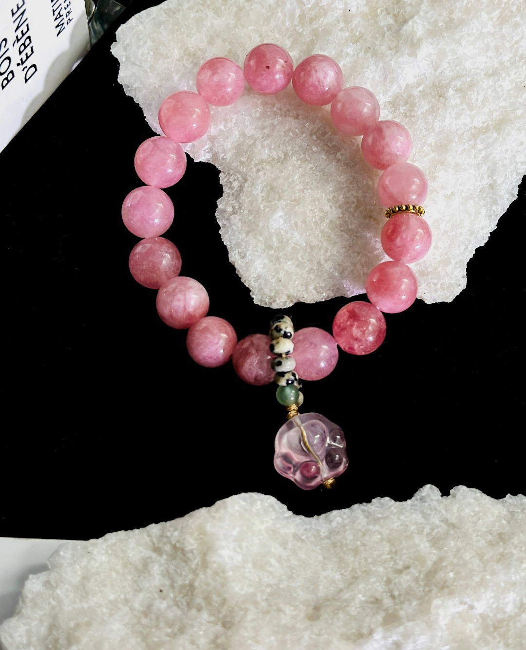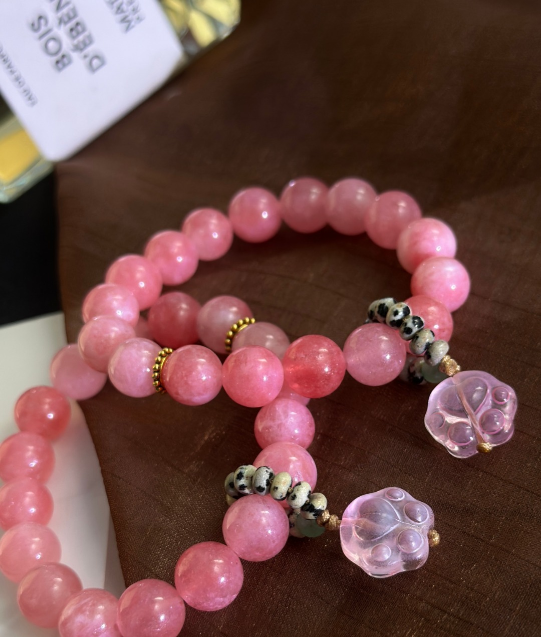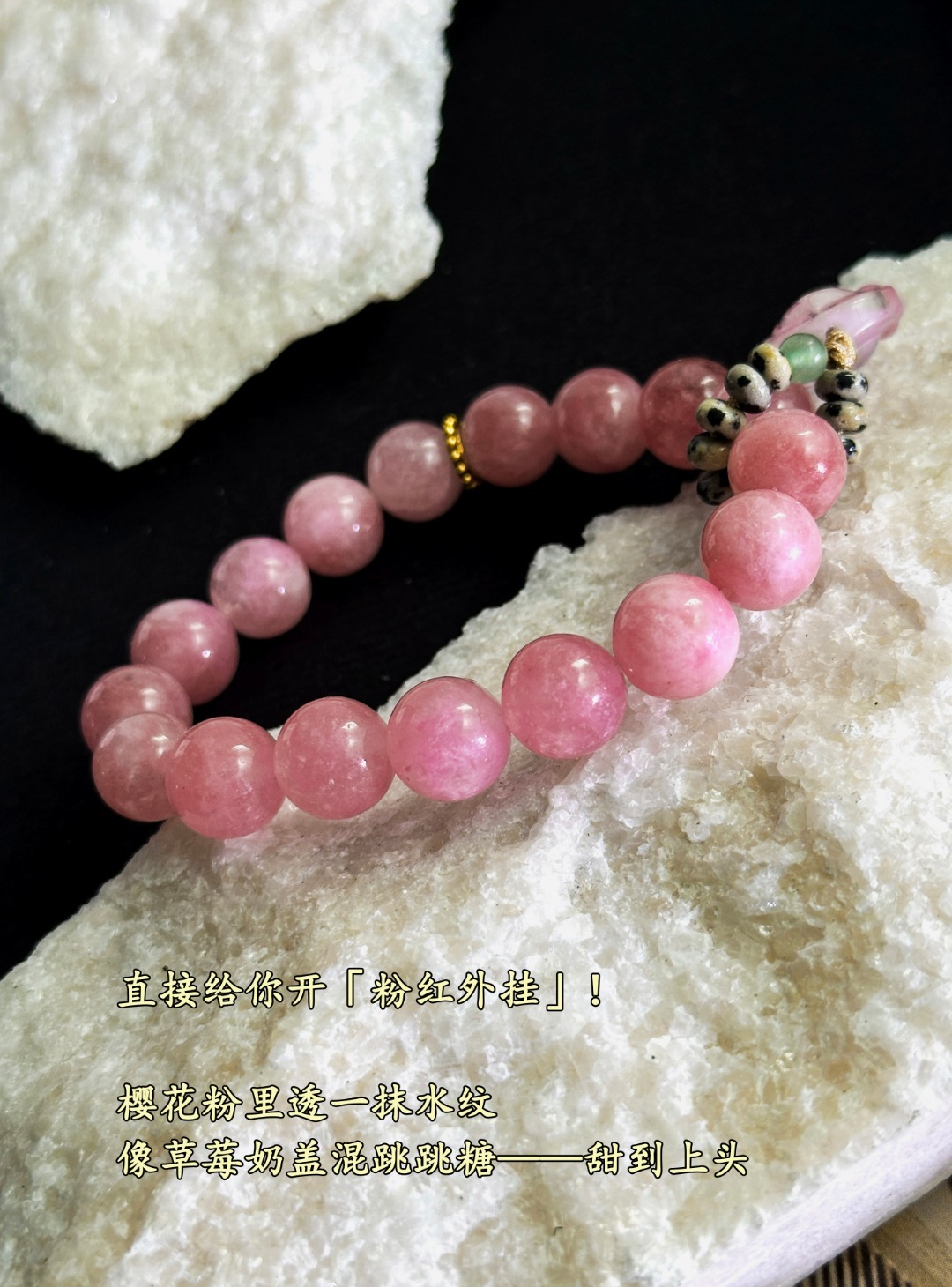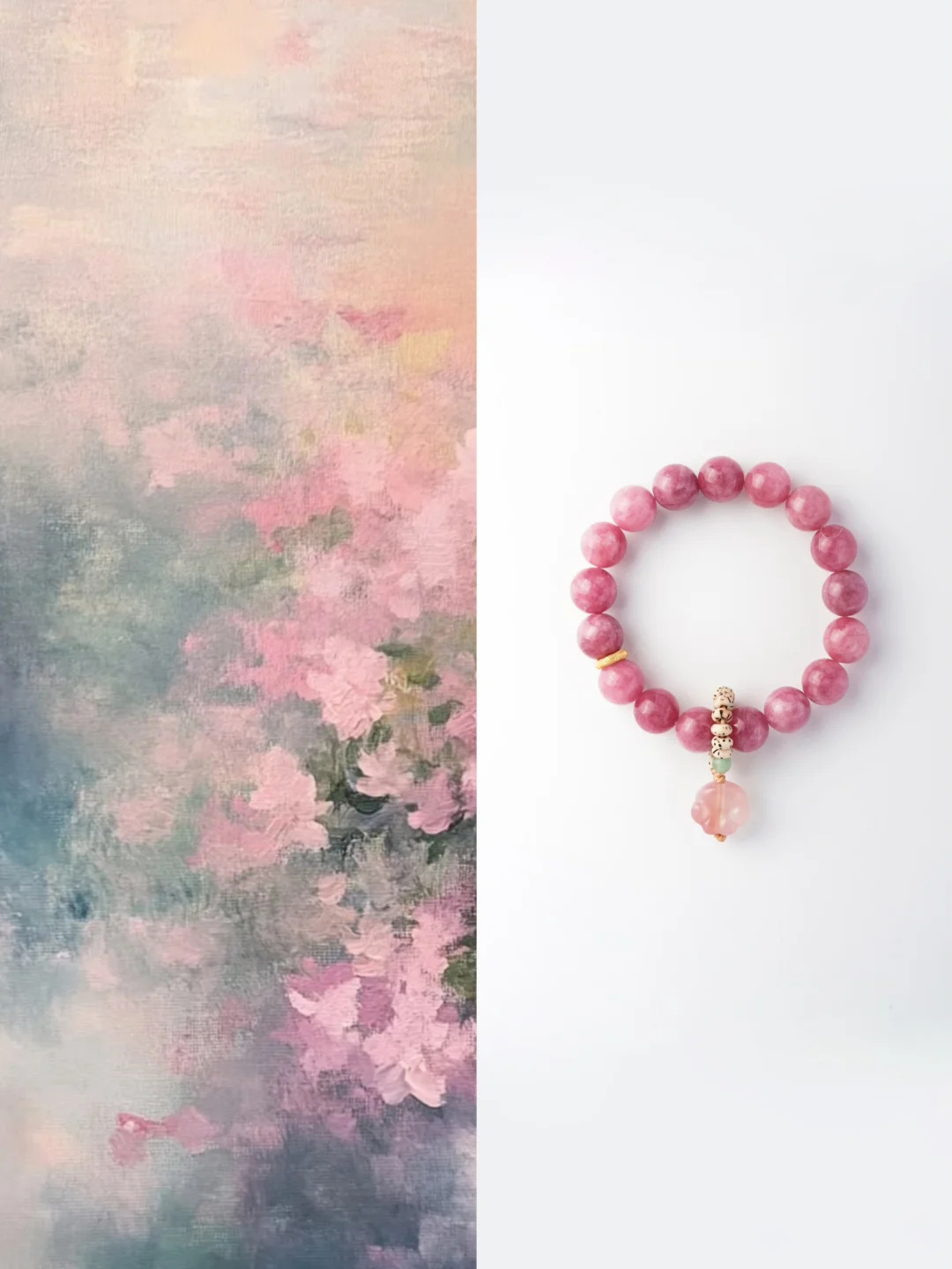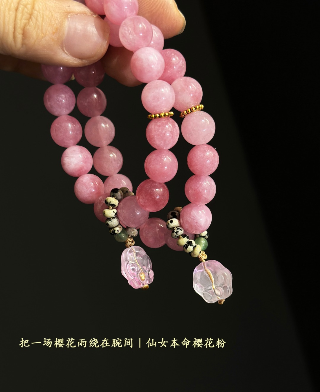 每颗珠子藏着云絮与霞雾,转动腕间,听见山川与春天的密语~樱花粉,