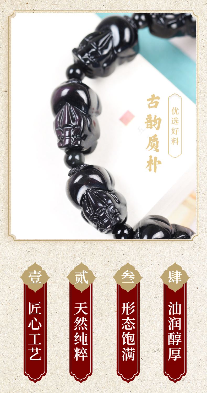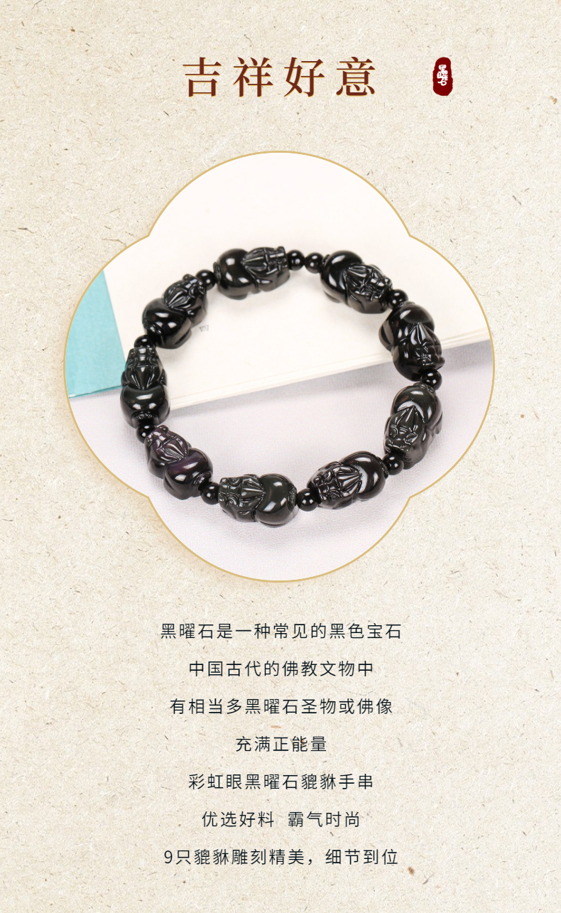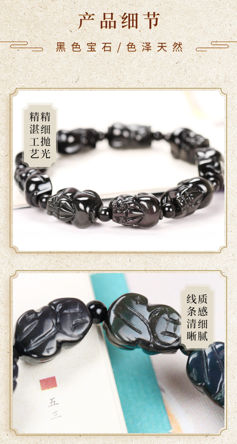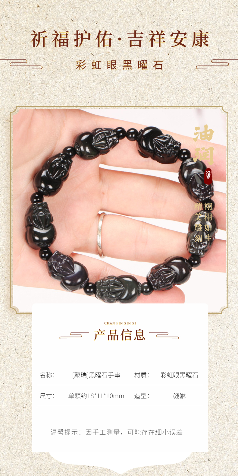 [ 聚瑞 ] 彩虹眼黑曜石貔貅手串 | 霸气有范儿,寓意祥瑞