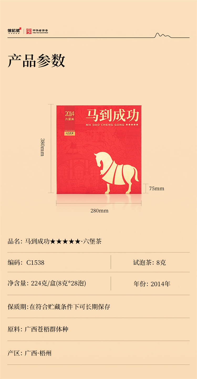 八马茶业 | 马到成功★★★★★黑茶六堡茶224g
