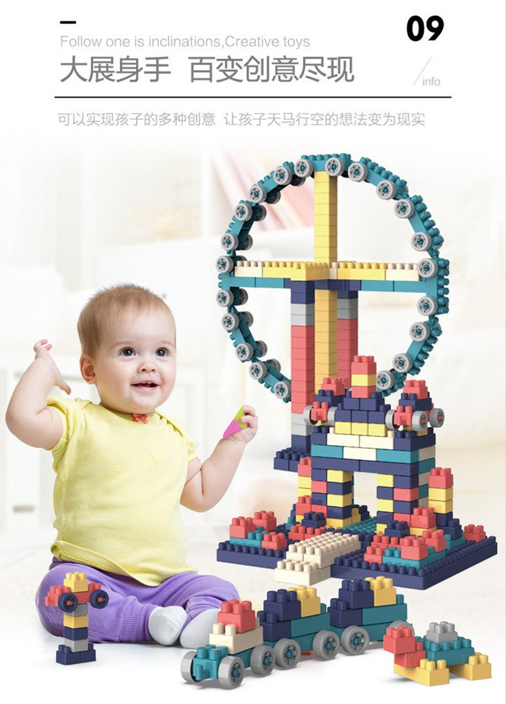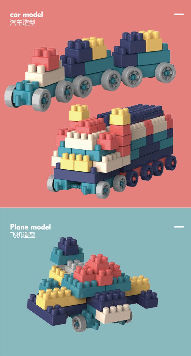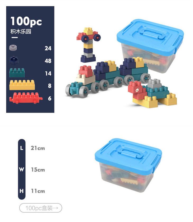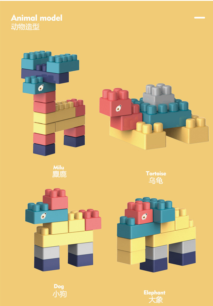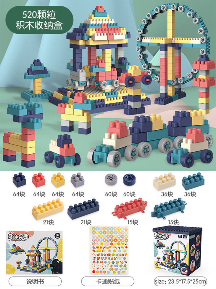 跨境莫兰迪大颗粒积木游乐园儿童益智玩具男女孩拼装DIY桶装积木