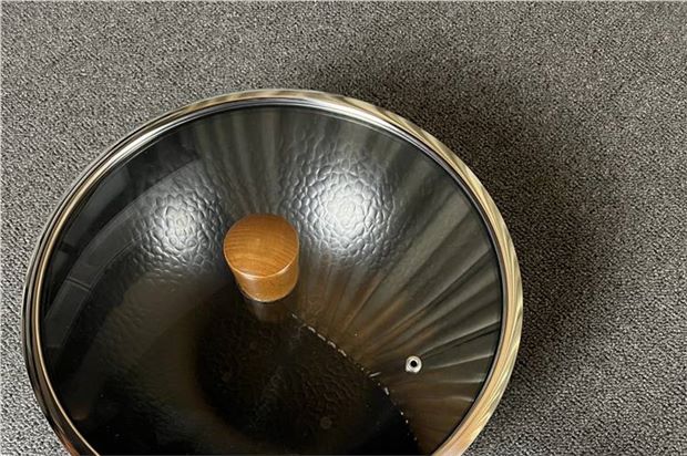 材质:精铁锅身(锻造工艺)、原木手柄、钢化玻璃锅盖