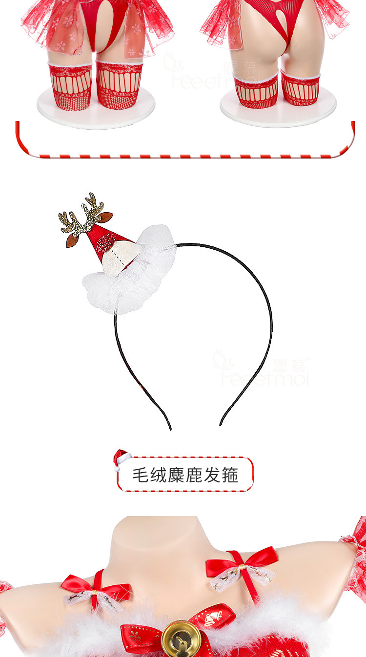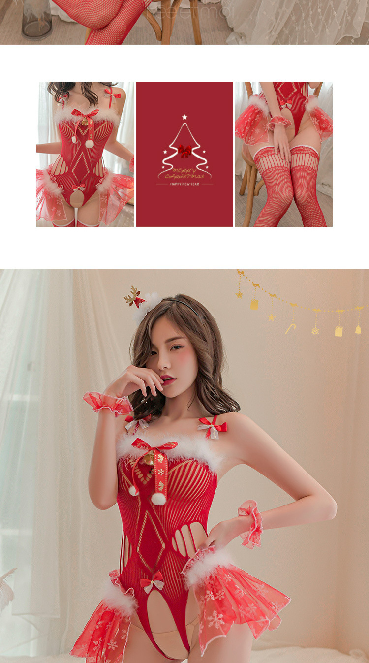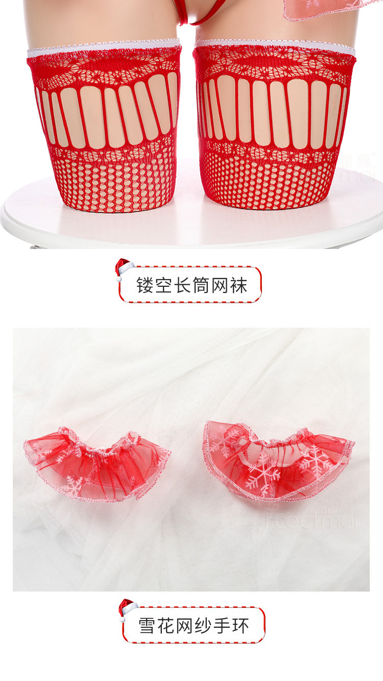 霏慕情趣内衣圣诞蝴蝶结连体网衣套装