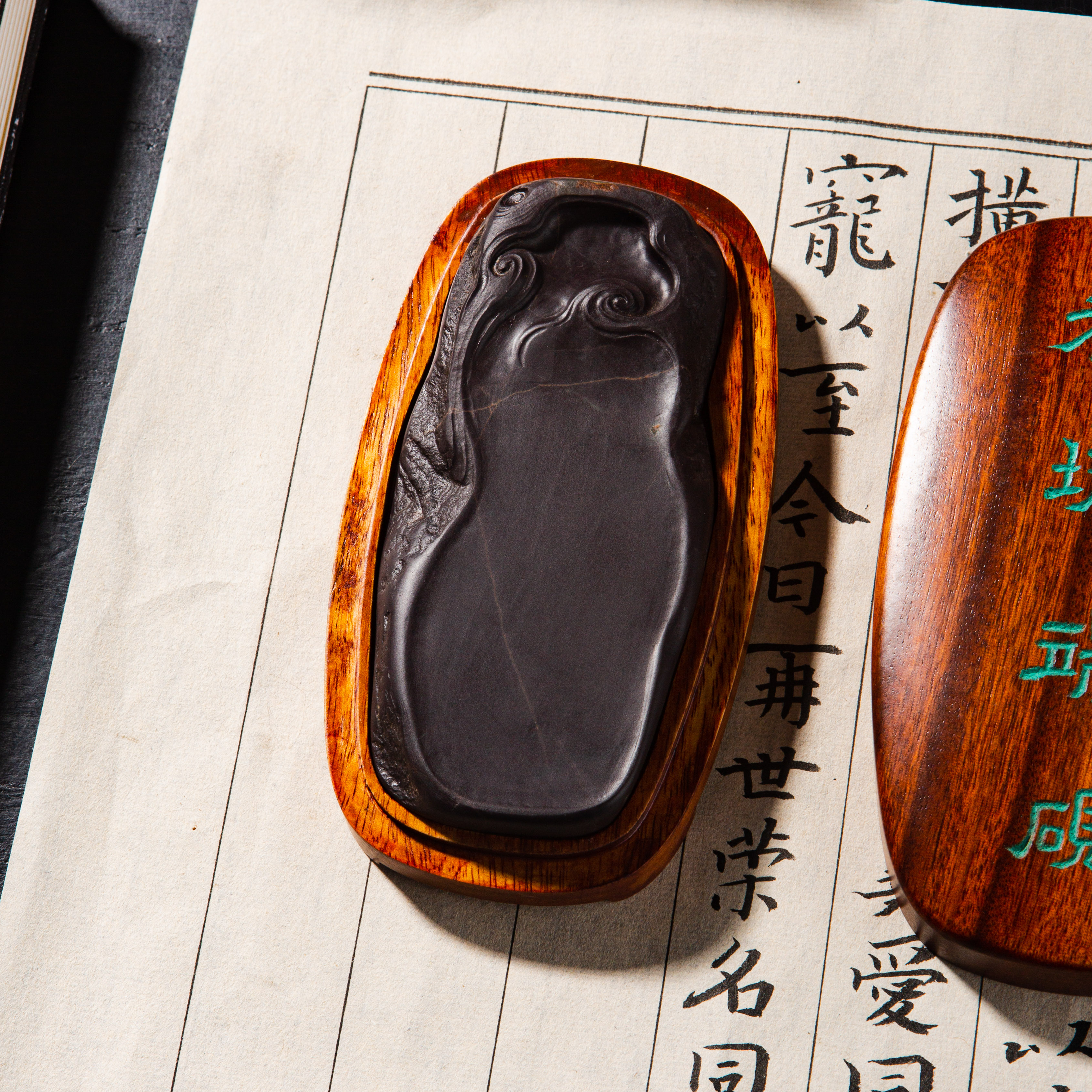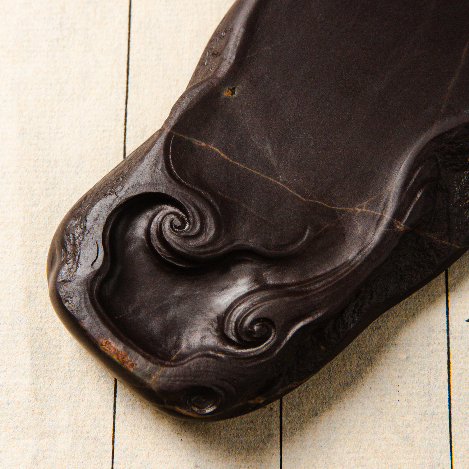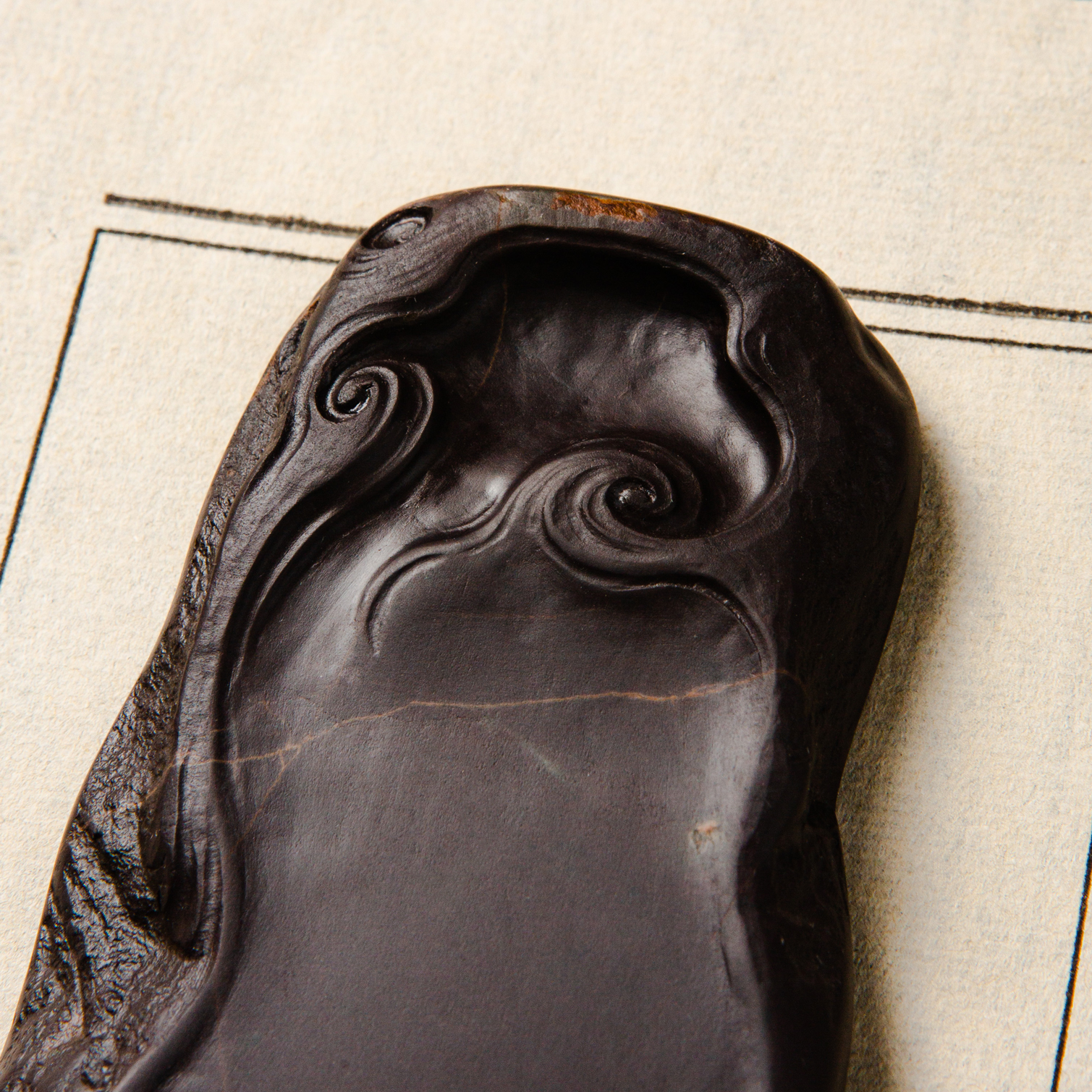 老坑端砚,质地温润,石品精美,雕工巧妙,文人气息浓郁,是案头之佳品。