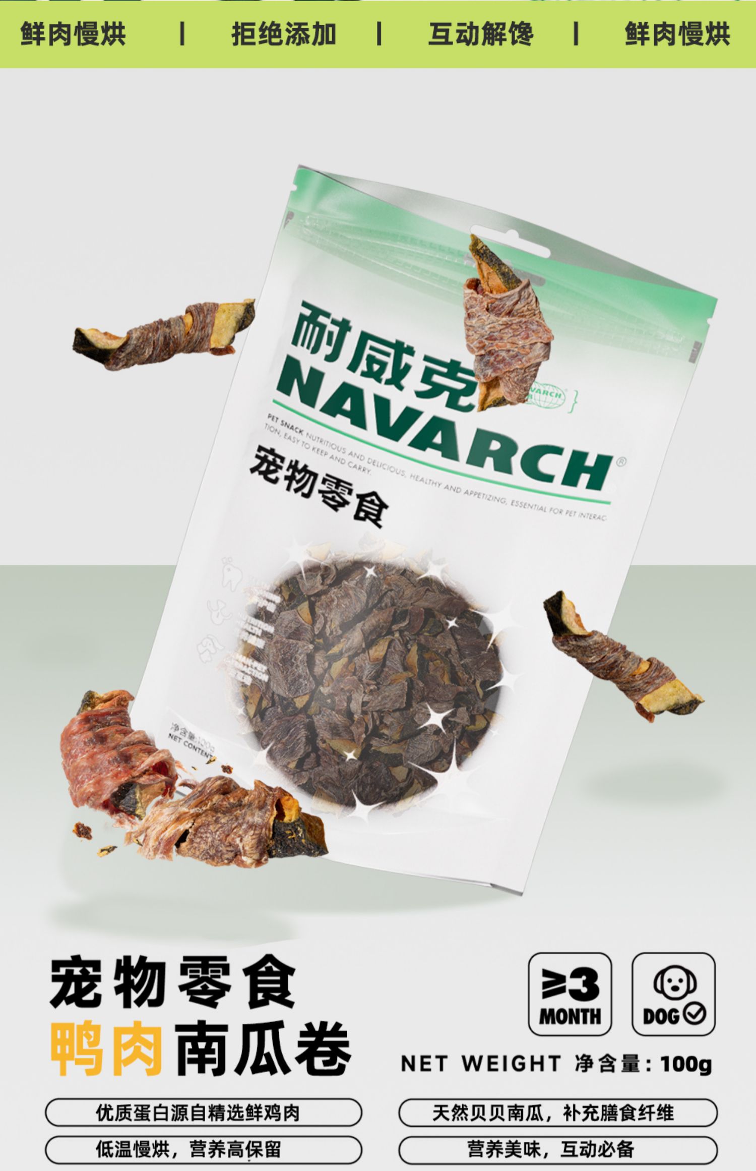 耐威克狗狗零食|鸡肉/鸭肉卷南瓜|天然食材|拒接添加|香脆不硬