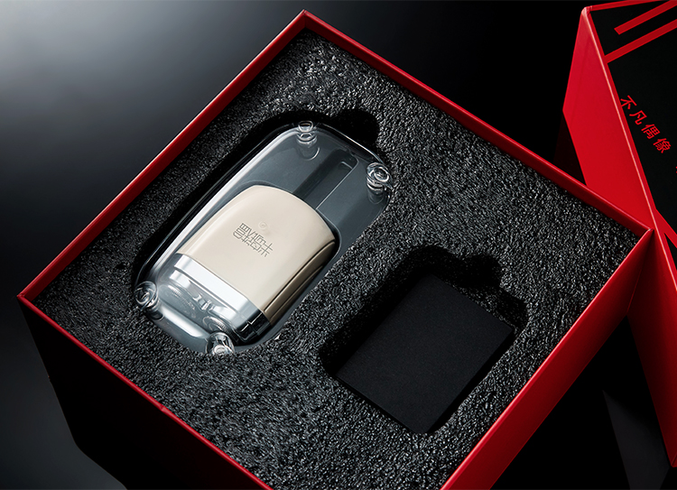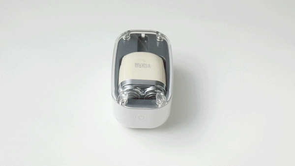把剃须刀放进去,打开开关,舱内就会亮起紫光。剃须也有了仪式感。
