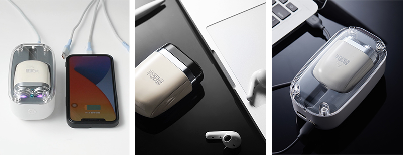 ◎ 太空舱具备充电宝的功能,可给杀菌中的剃须刀充电,也可给手机充电