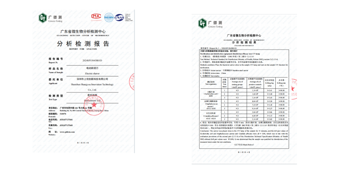 不到半小时,紫外线灯就能干掉99.9%的细菌(刀头部位),数据来源:广微测的检测报告。