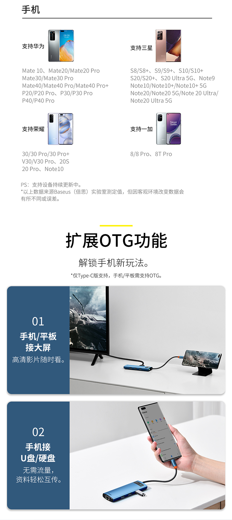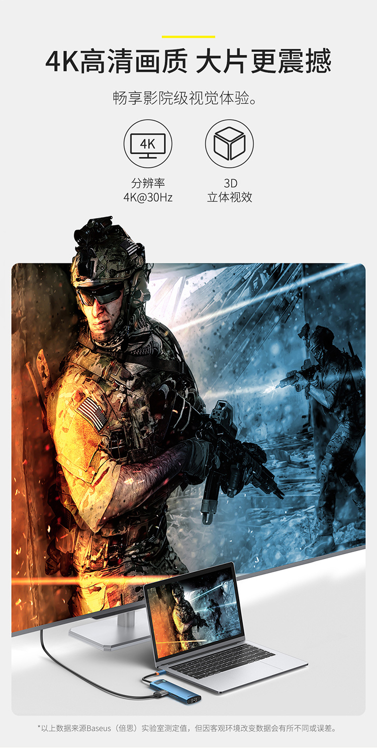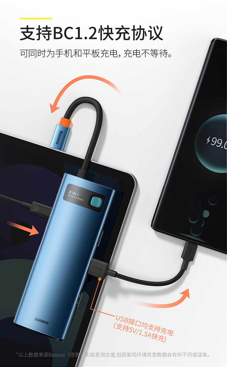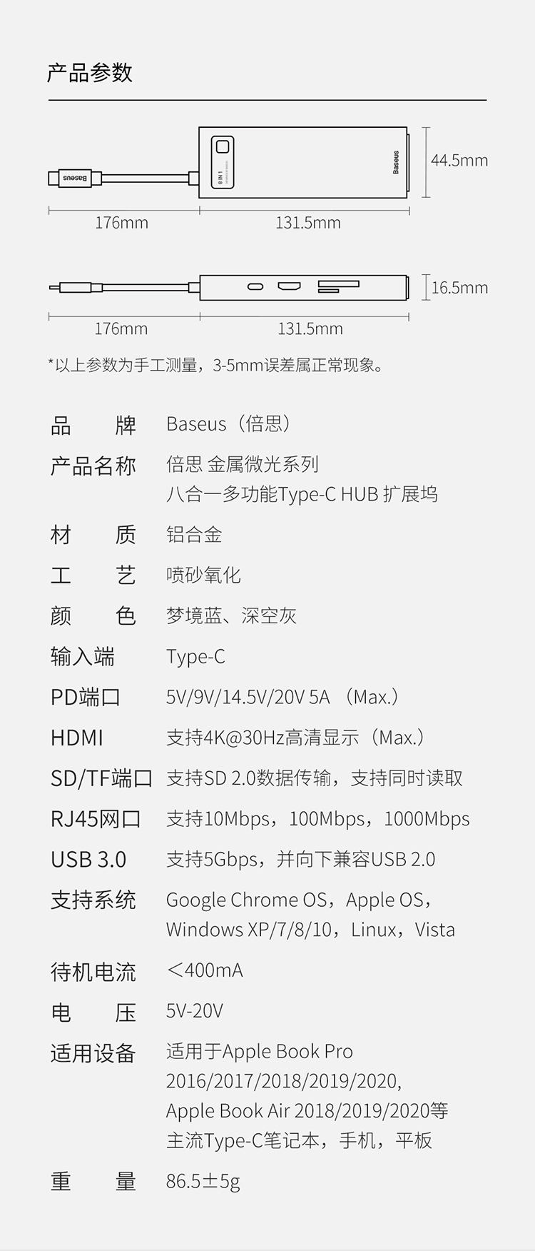倍思 金属微光系列 八合一多功能Type-C HUB 扩展坞 梦境蓝(Type-C to HDMI*1+USB3.0*3+PD*1+RJ45*1+SD/TF*1)