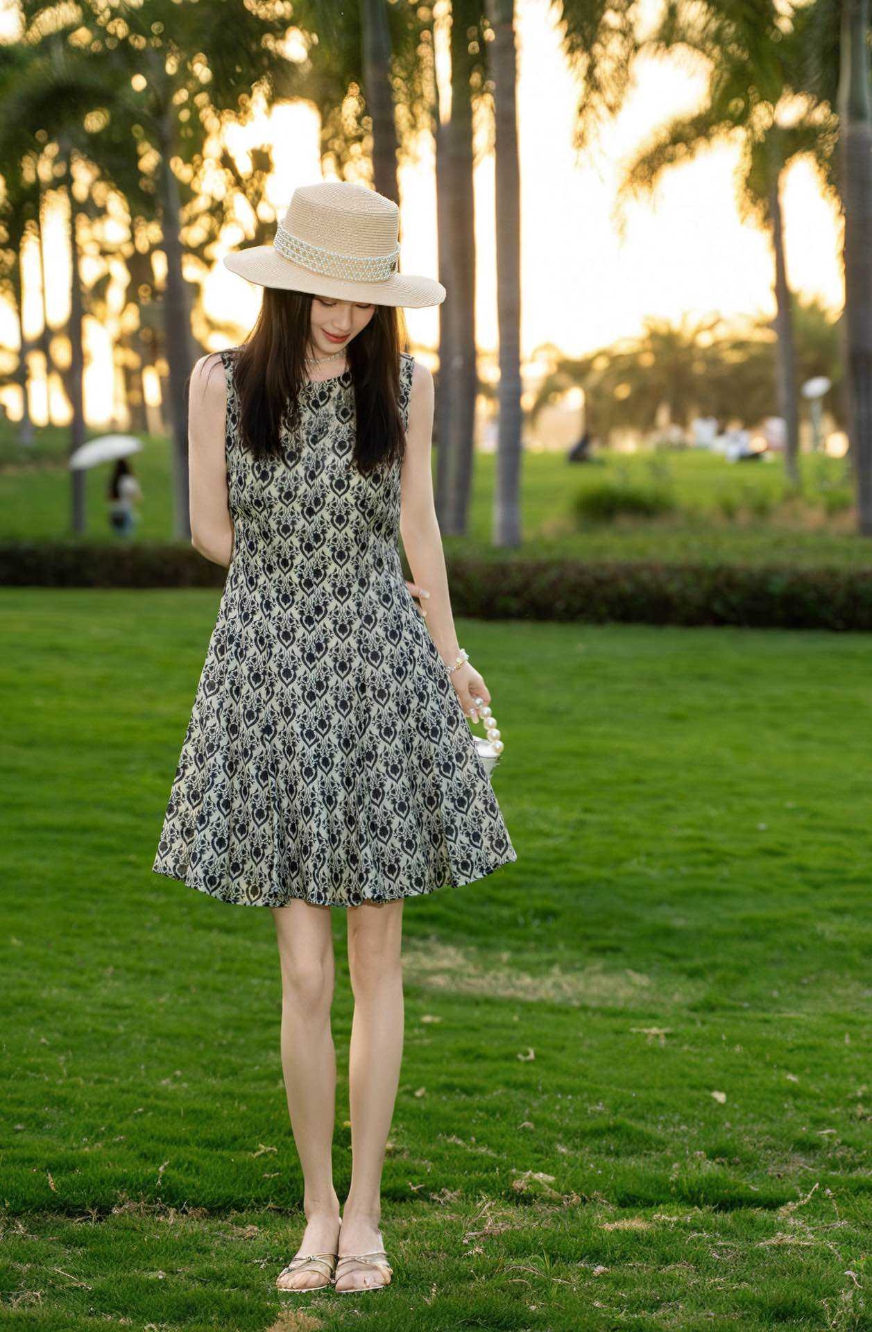 SZ2S122_漆黑色_连衣裙_夏季_圆领无袖收腰A字短款复古_高级女装_BERNIEELEN 伯妮斯茵