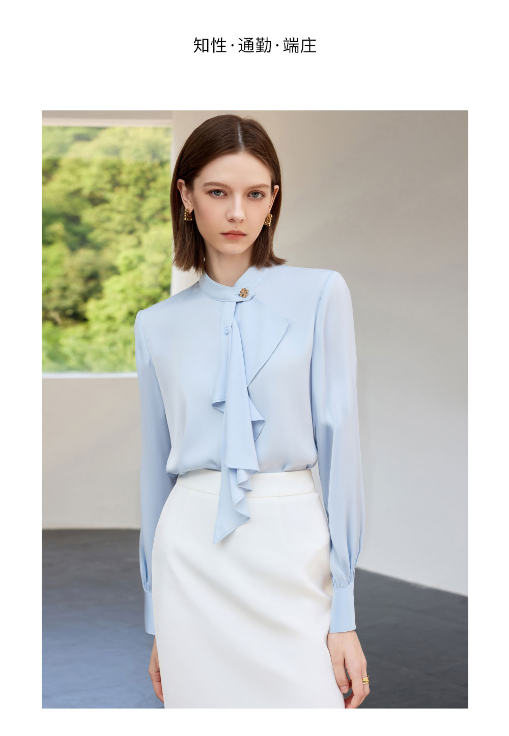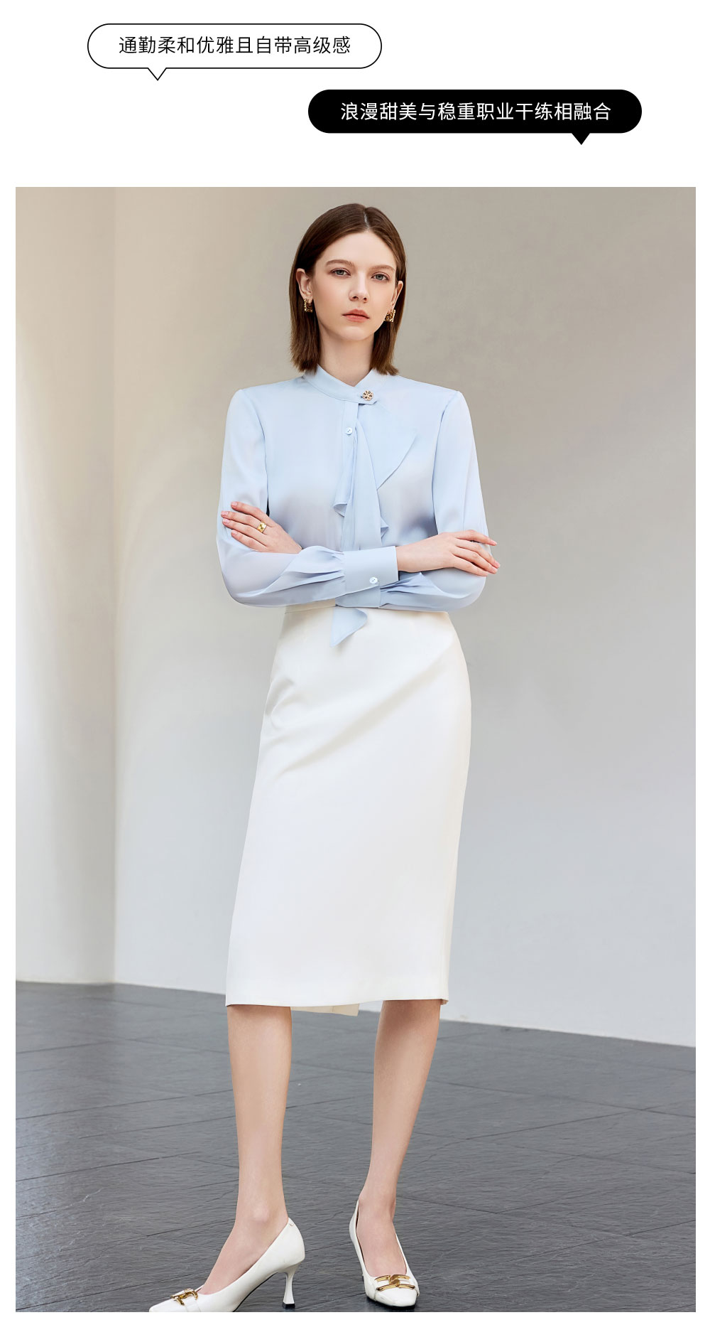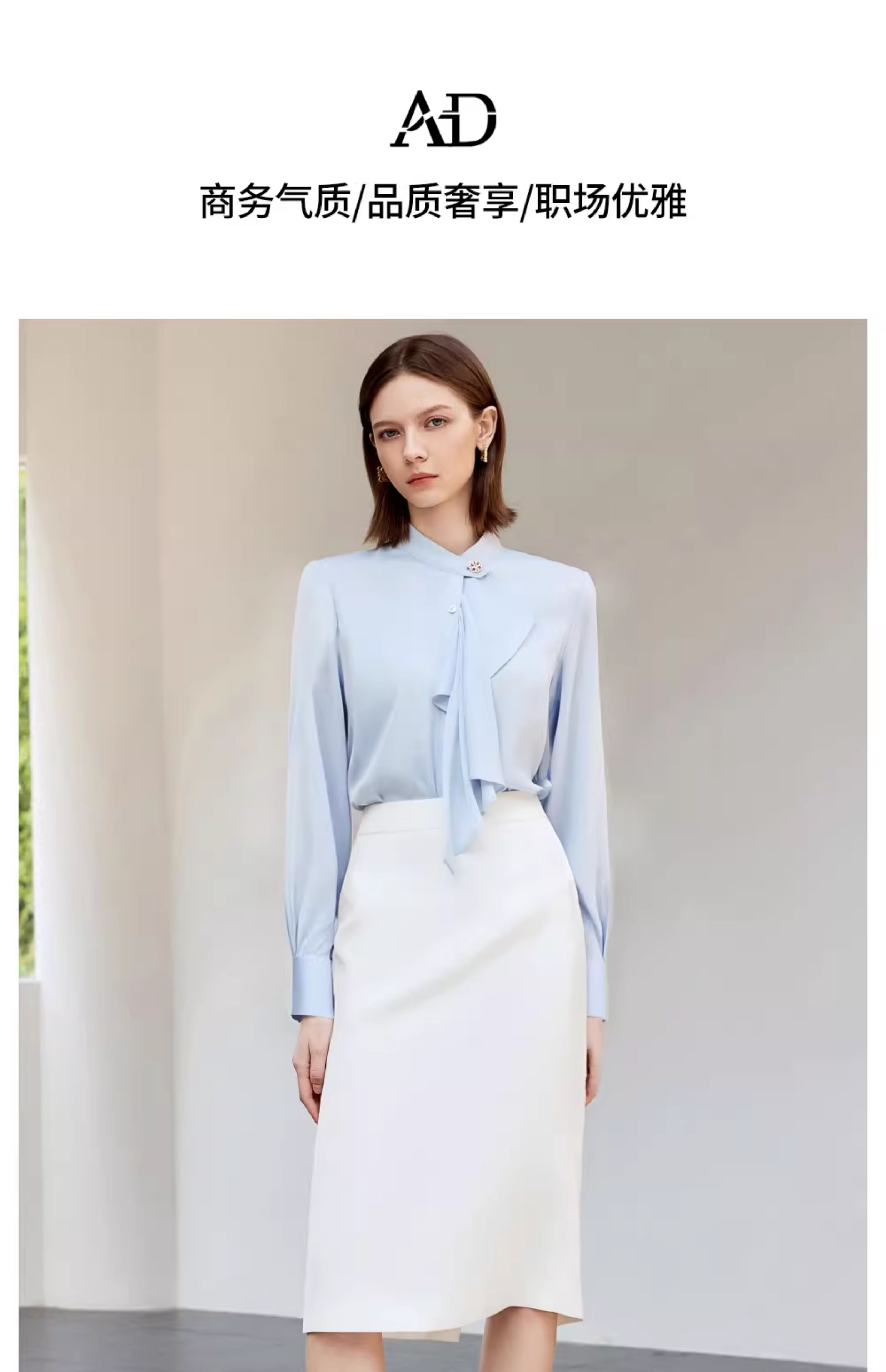 AD通勤蓝色衬衫女2025新款气质女神范职业装长袖衬衣包臀裙两件套