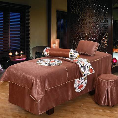 棉麻压花盘扣床罩(深咖色)床罩4件套