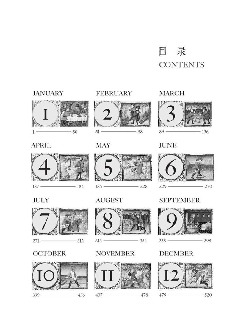 正如一般日记体例,有些日期发生了多个事件,有些则按部就班。在缺乏重要事件可记载的日期里,芒特穿插了该时节的相关内容,比如食谱或药方、沐浴说明、中世纪人们的睡眠模式,以及其他关于日常生活的文化常识。这样的安排不仅填补了叙述空白,也能让读者更全面地感受到中世纪的生活节奏。
