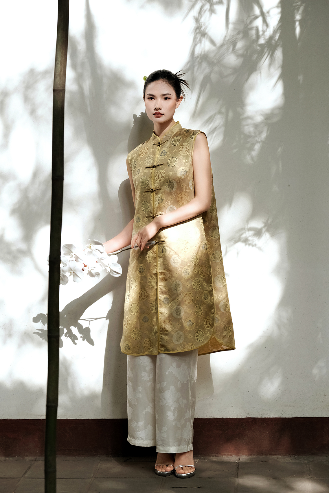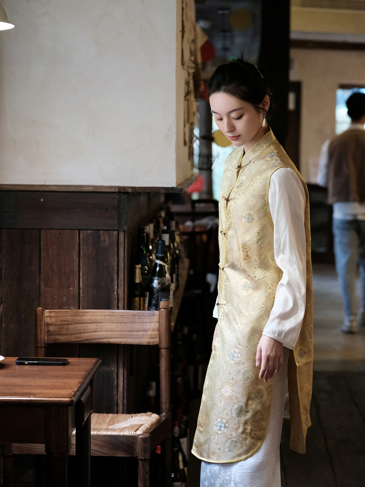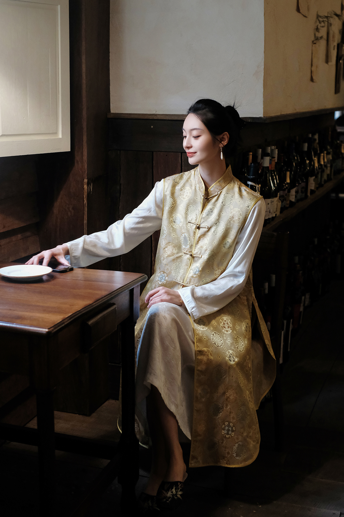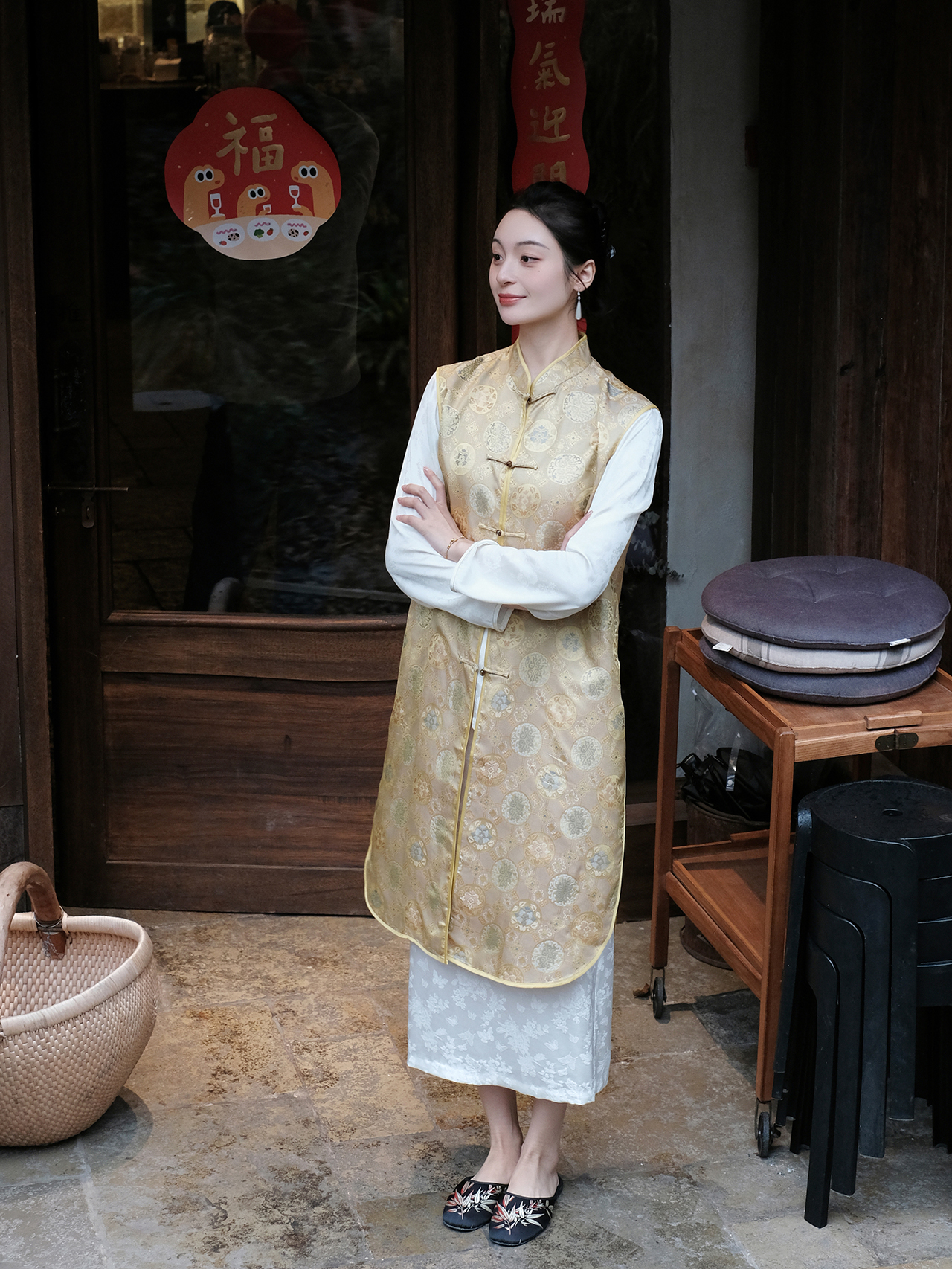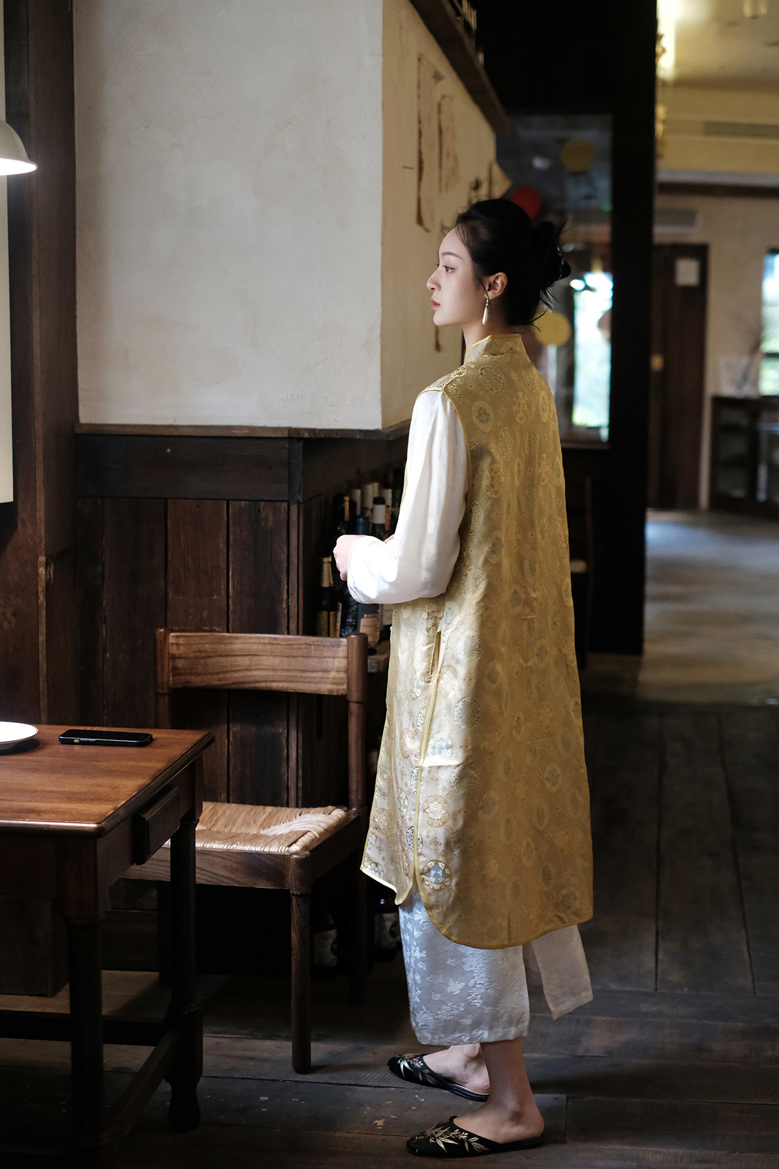 盛唐婧 |真丝宋锦花罗圆形花卉长马甲