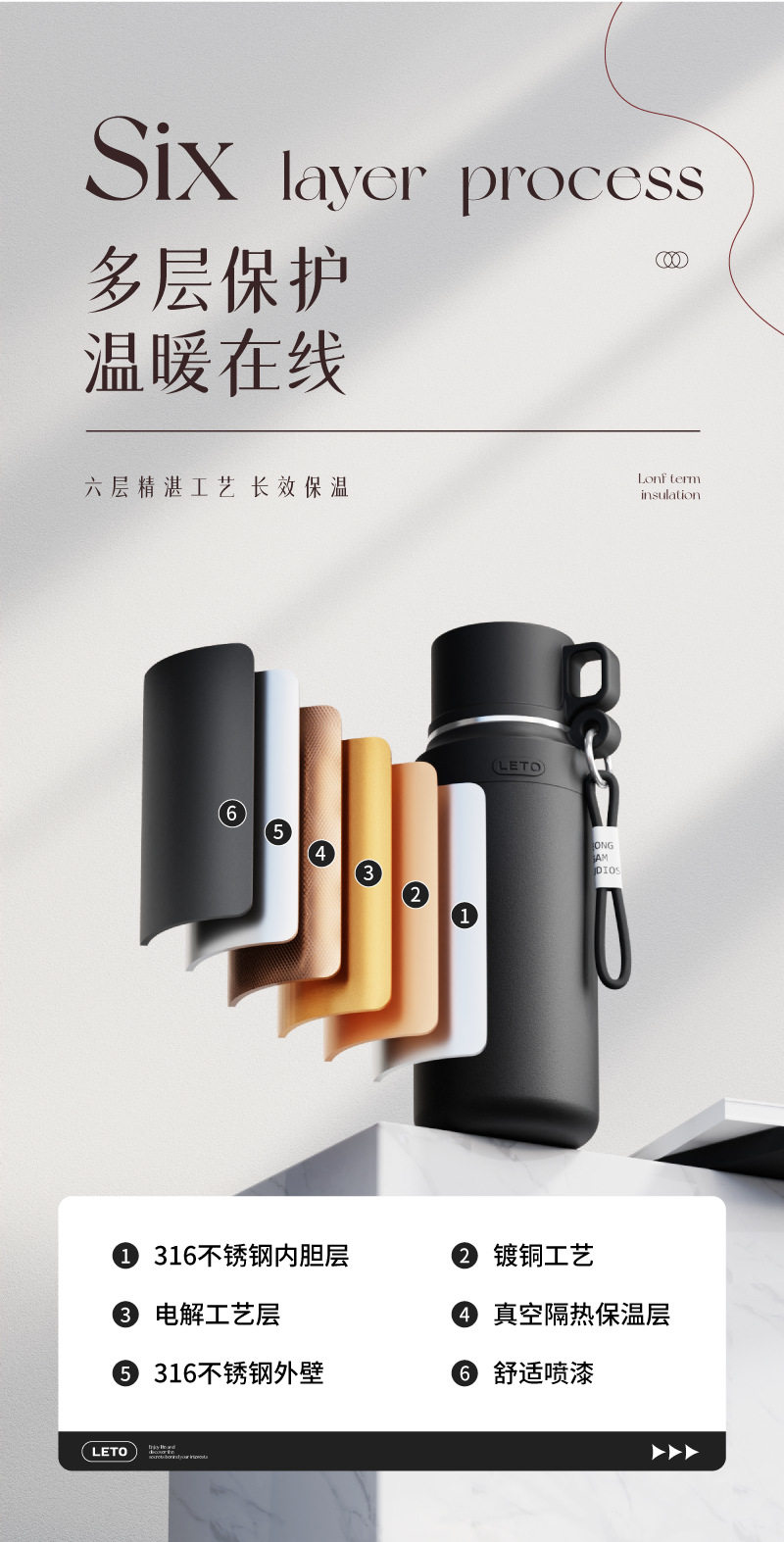 姜汤保温杯 户外316不锈钢双层真空 保温壶 旅行登山茶水分离保温杯