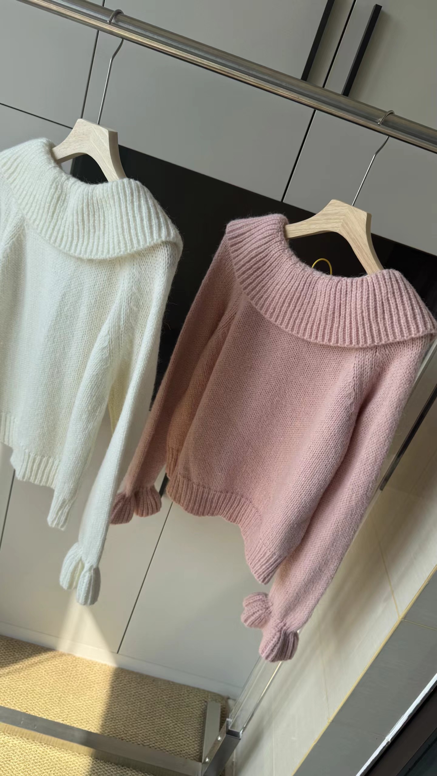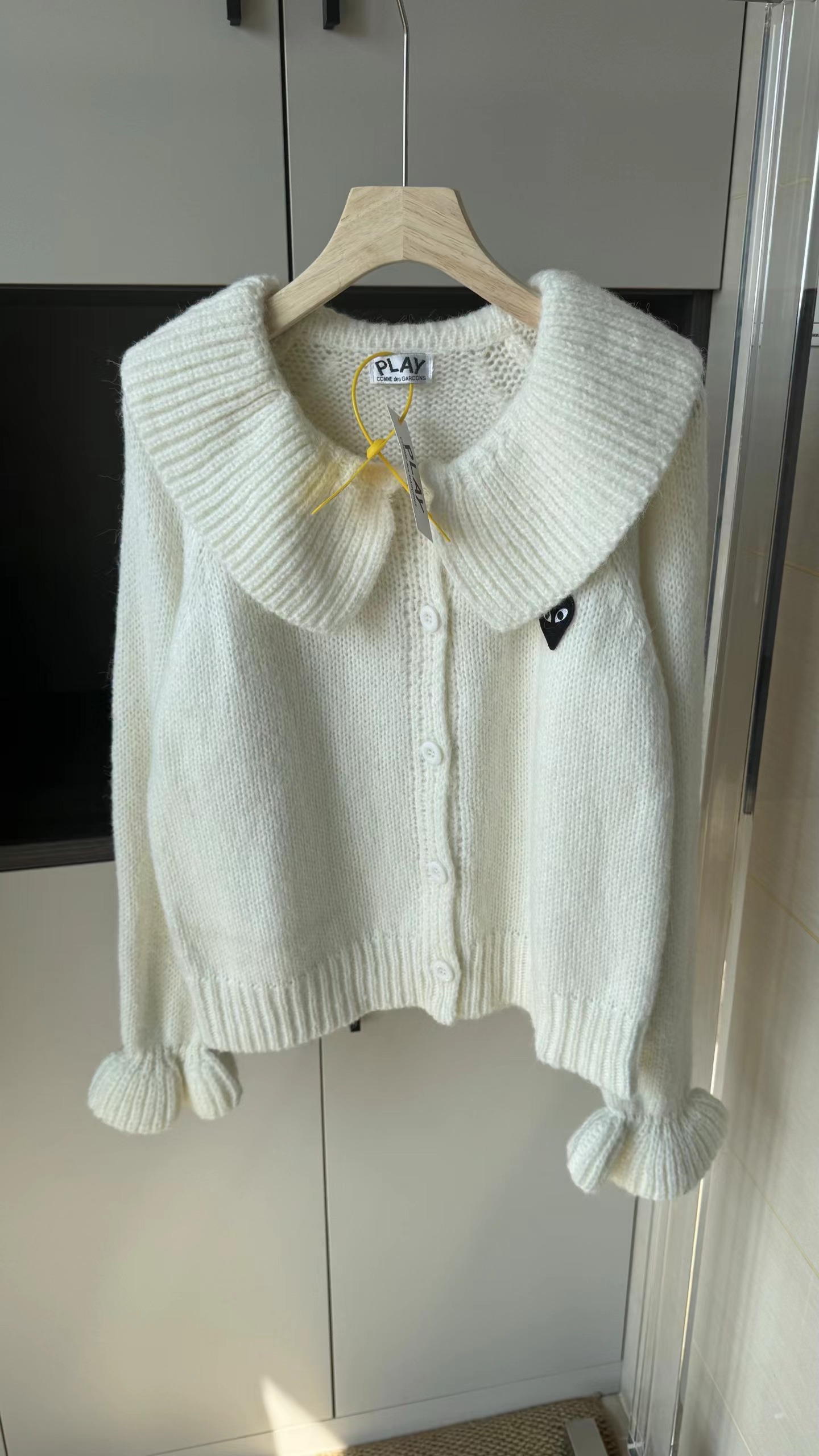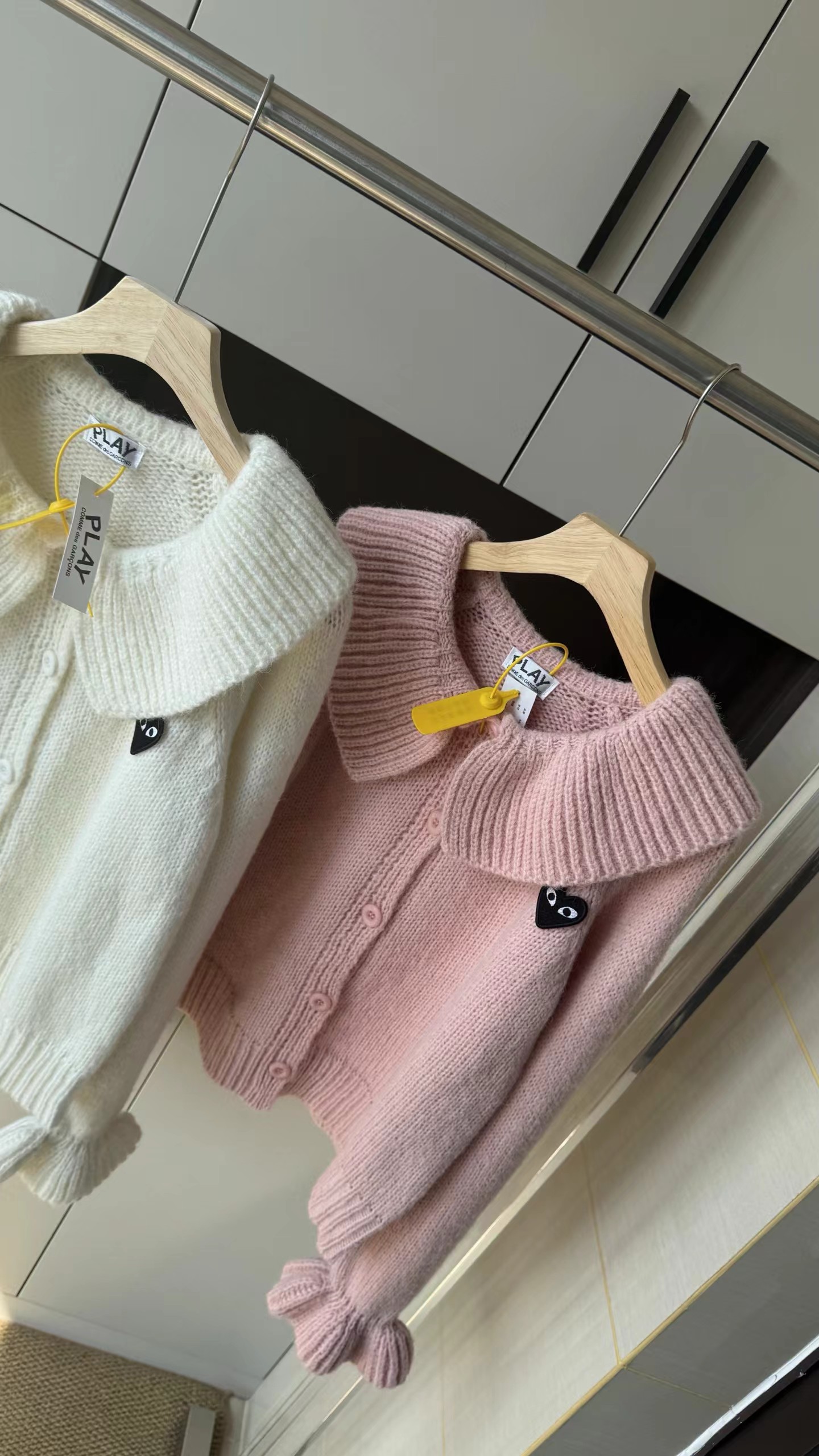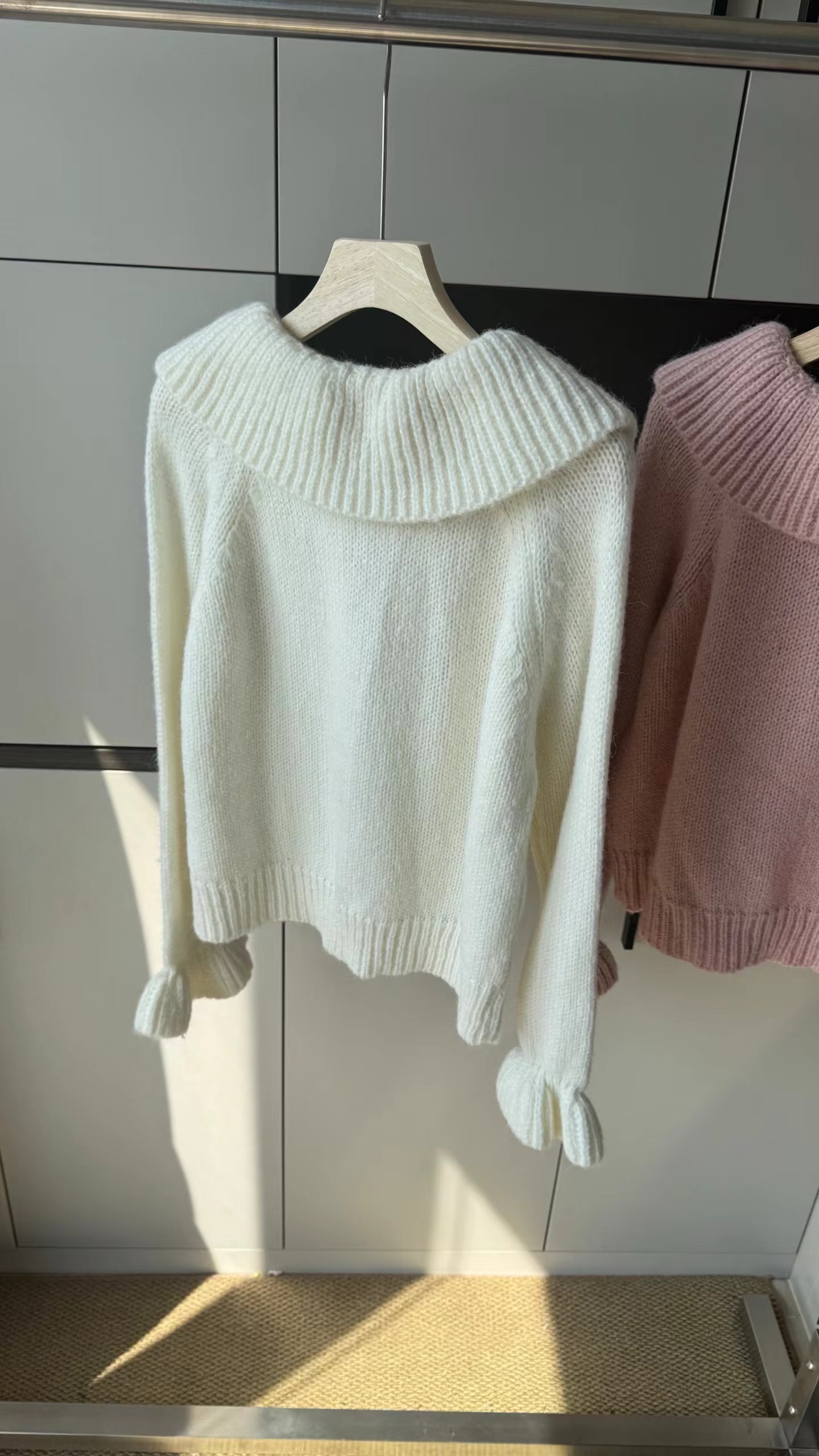 大翻领针织开衫温柔甜美的日系少女风,软糯的色调与版型自带慵懒氛围感,适配约会、通勤、日常出街等多种场景柔和的浅粉色调,低饱和度不挑皮,自带减龄效果。大翻领设计是亮点,宽边针织领型修饰脖颈线条,同时增添复古感与层次感。 宽松落肩版型,对身材包容性强,弱化肩线,营造随性慵懒的氛围。 单排纽扣开合,方便穿脱,也可半开穿着打造随性造型。袖口采用喇叭褶皱设计,增加了甜美感与灵动性,修饰手臂线条。下摆为微短款设计,搭配高腰下装能优化身材比例,显高显瘦。左胸位置点缀黑色爱心刺绣小标,提升了单品辨识度,增添俏皮感。粗针织面料,纹理清晰可见,触感柔软蓬松,保暖性与舒适度俱佳,适合秋冬季节。面料带有轻微空气感,上身轻盈不臃肿,能自然呈现柔和垂坠感