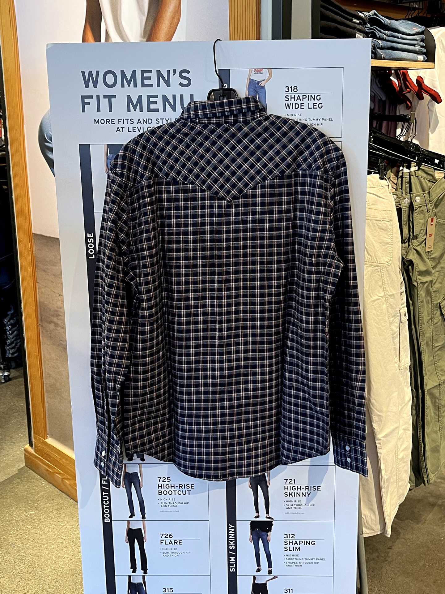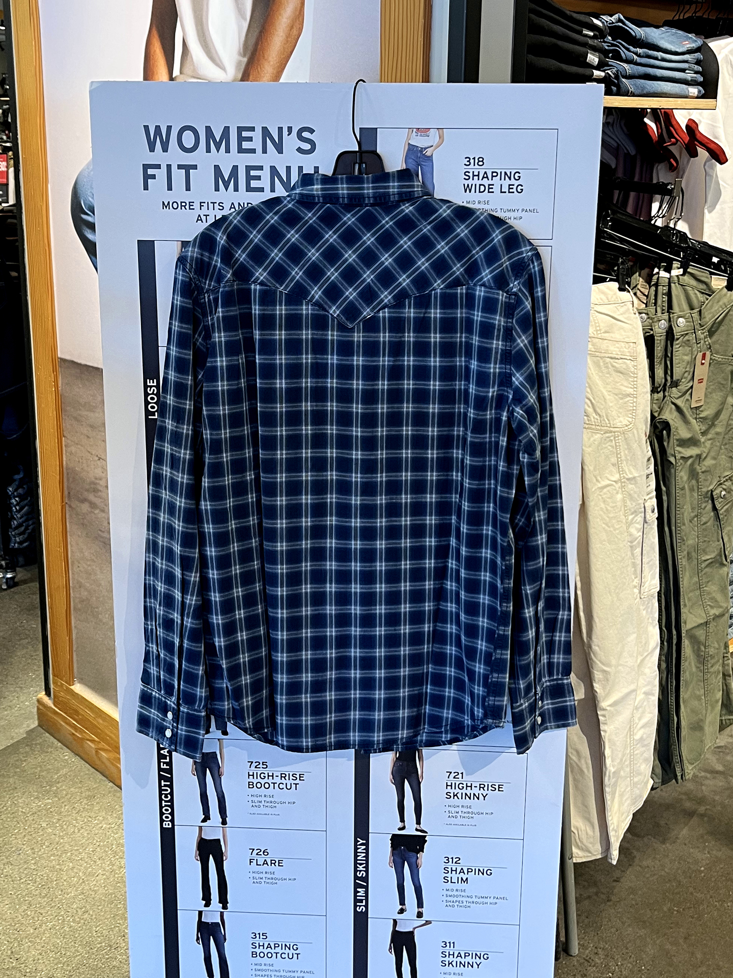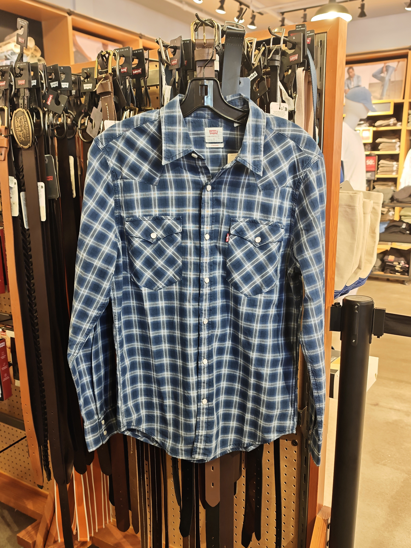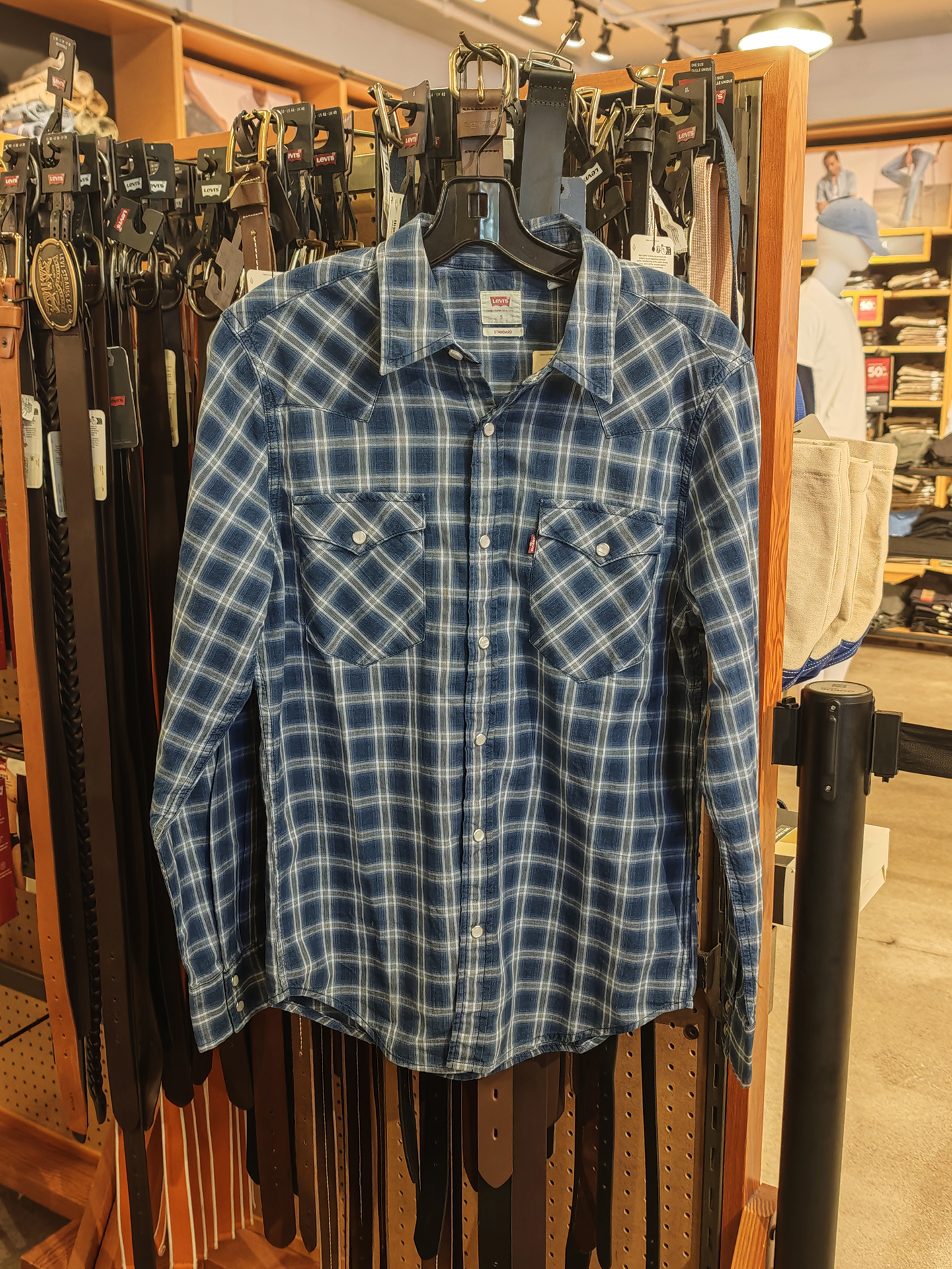 Levi’s/李维斯 男士春秋纯棉经典西部风双口袋格纹尖领长袖衬衫