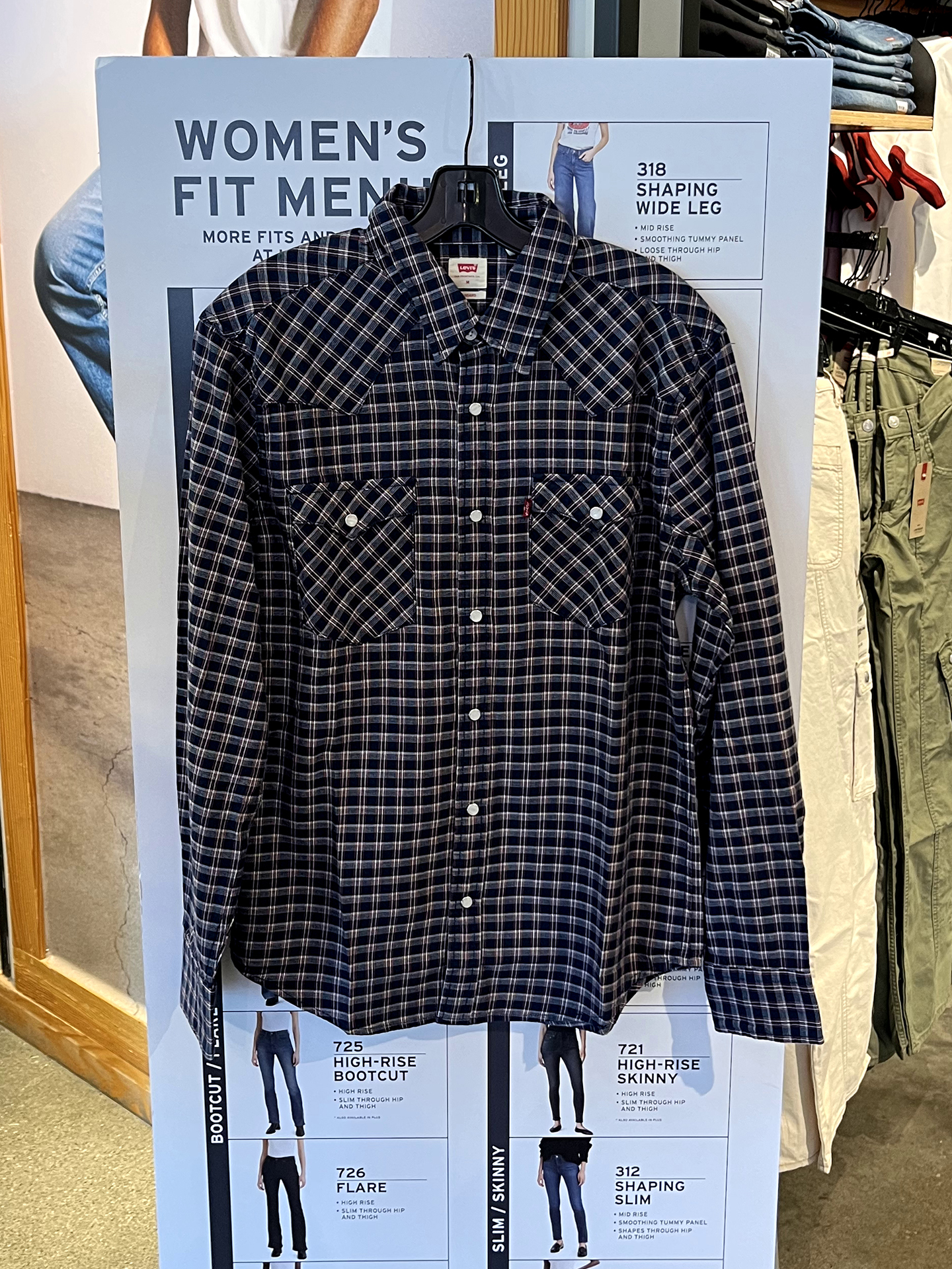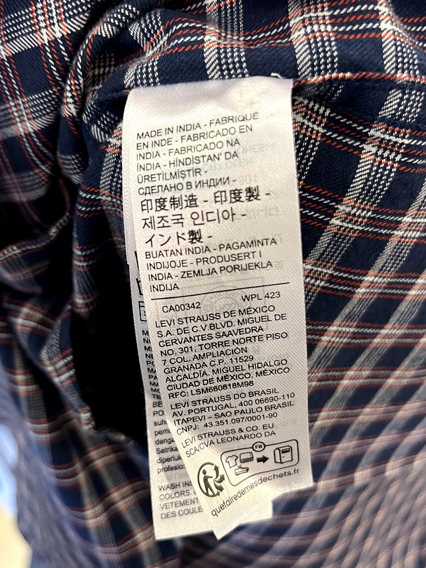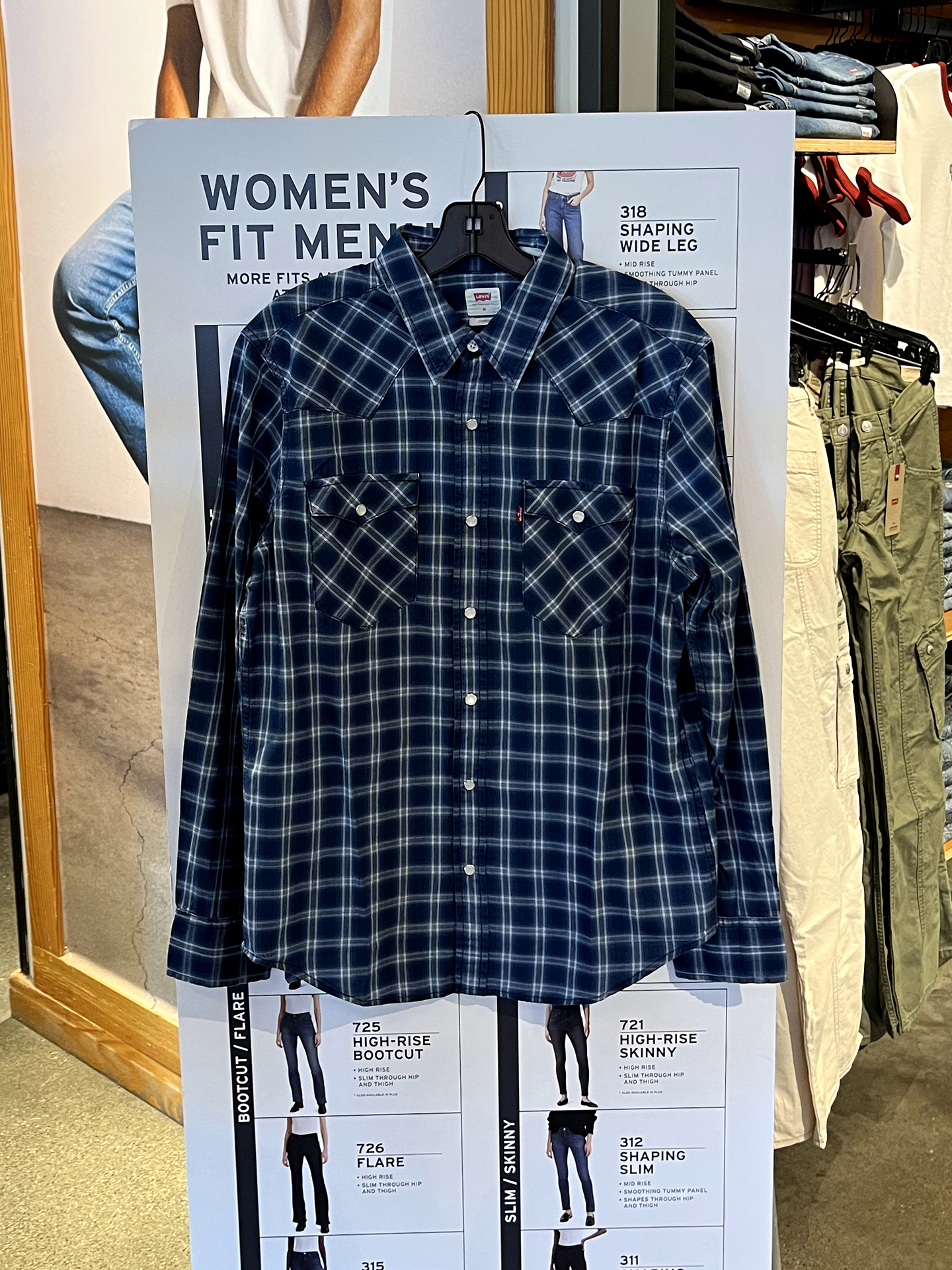 Levi’s/李维斯 男士春秋纯棉经典西部风双口袋格纹尖领长袖衬衫